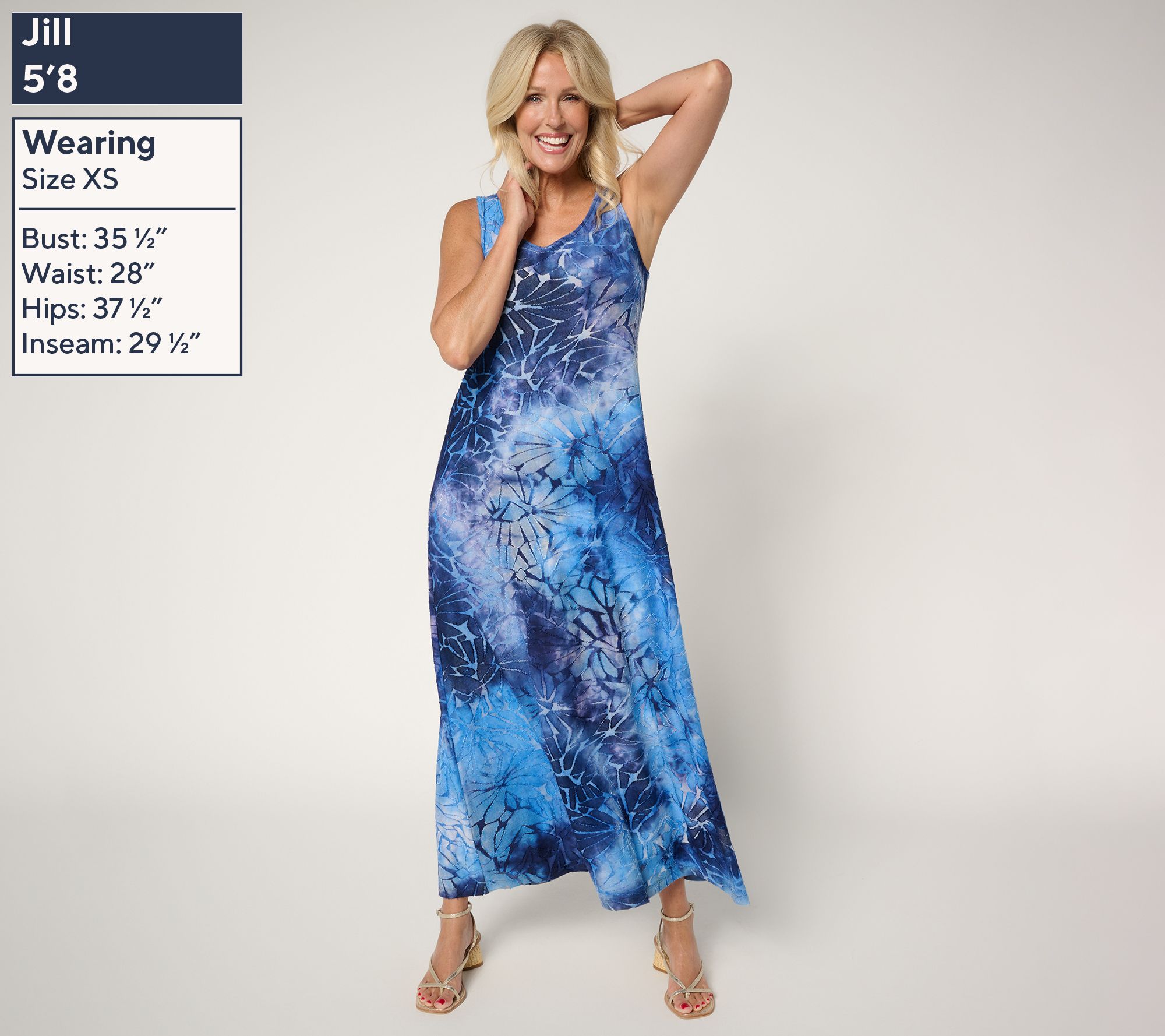 Ready for garden parties and sunny celebrations, this printed burnout maxi dress captures effortless elegance with its semi-fitted style. Slip into its pullover design featuring a scoop neckline and revel in the flattering flow from the center-back seam detail with gentle coning at the bottom. From Susan Graver.