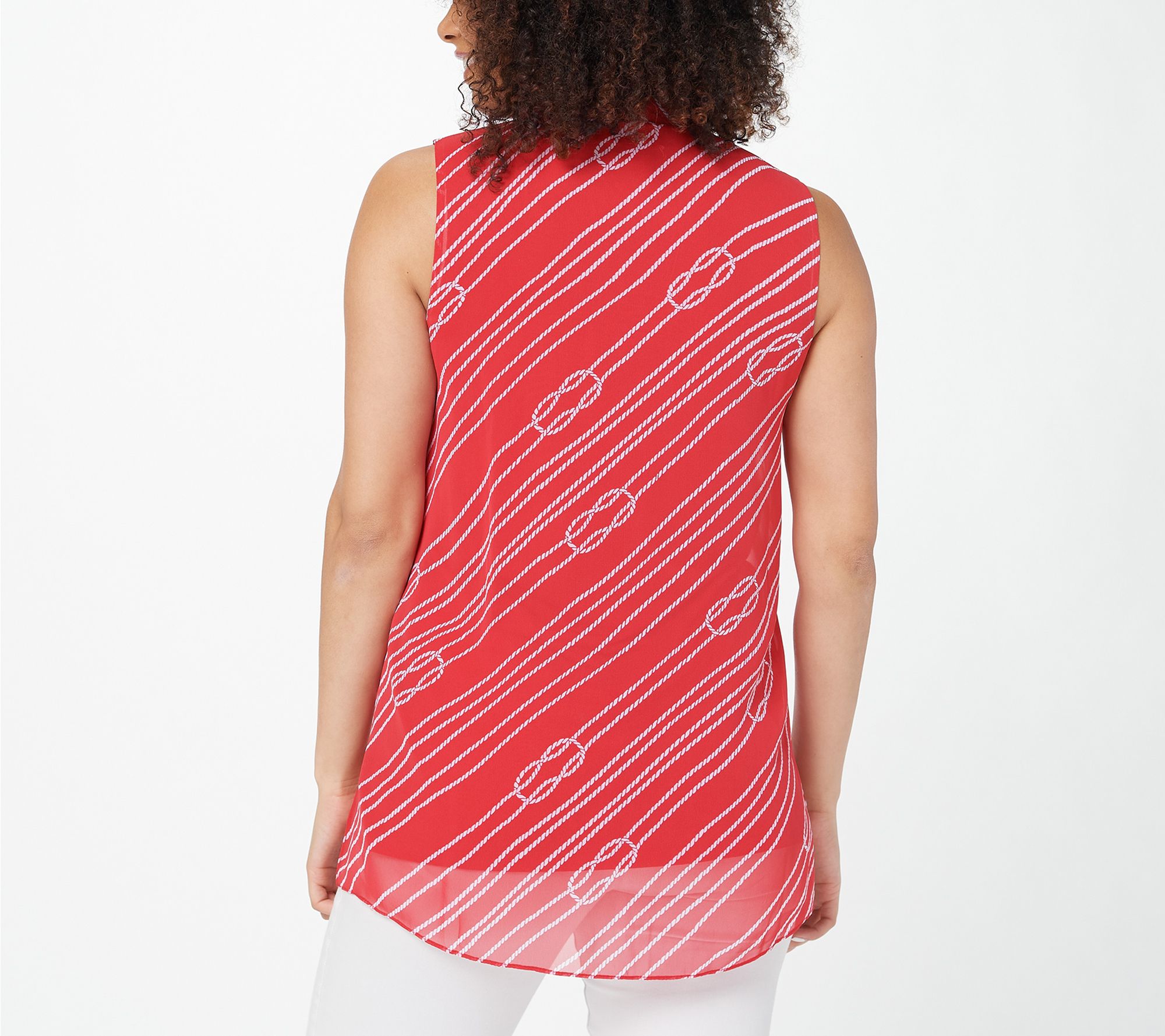 "As Is" Susan Graver Regular Printed Chiffon Sleeveless Tunic w/ Scarf
