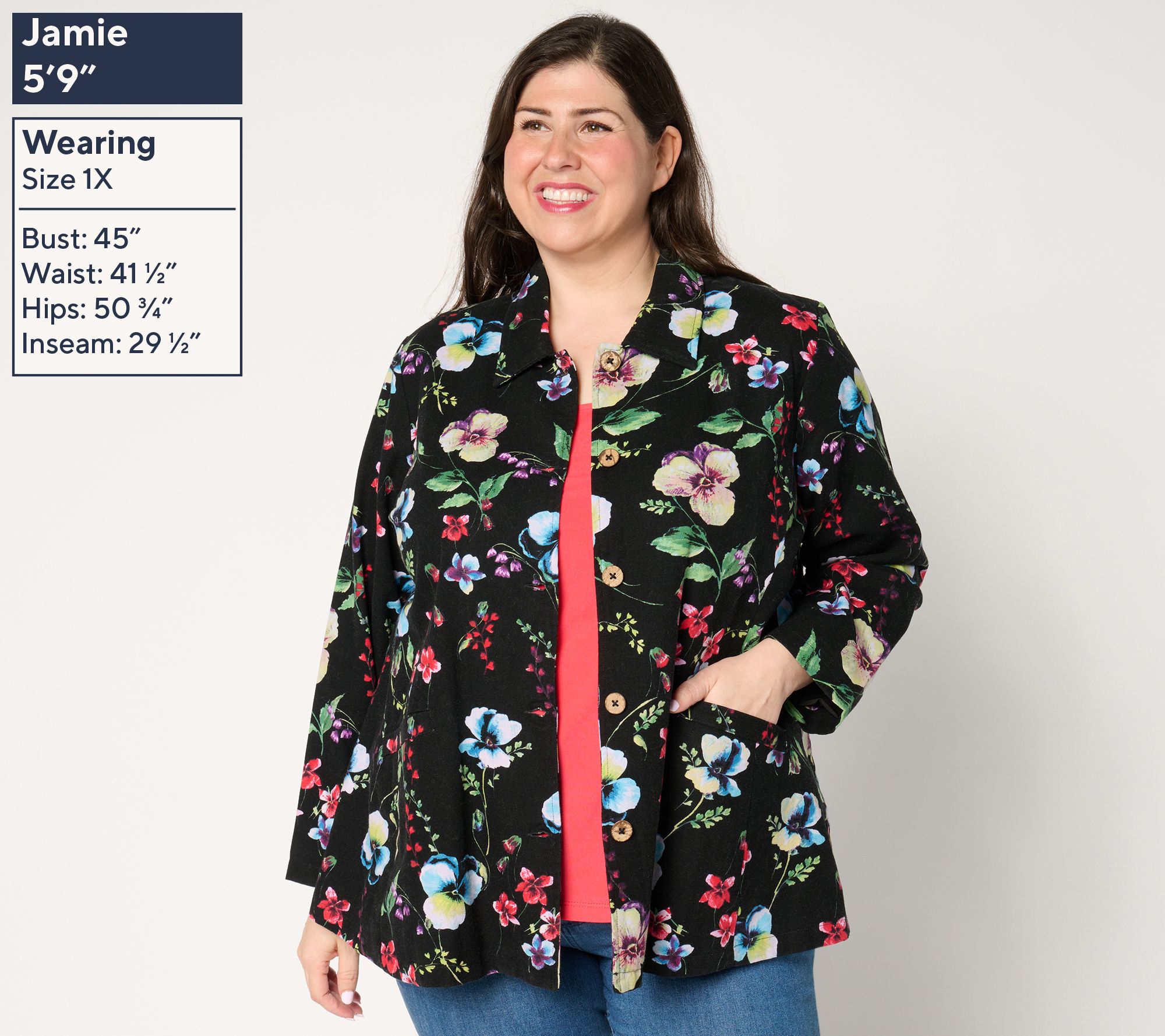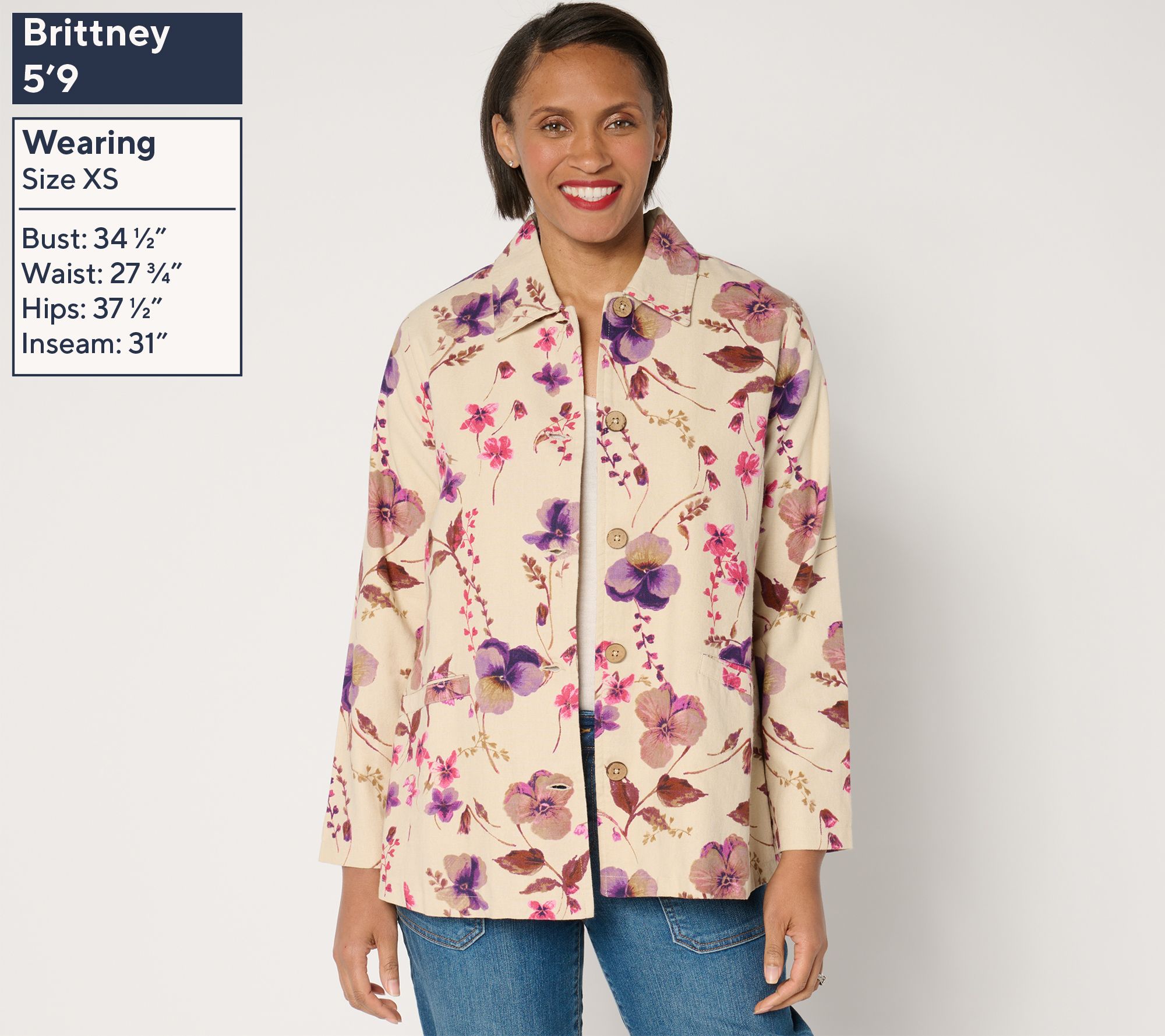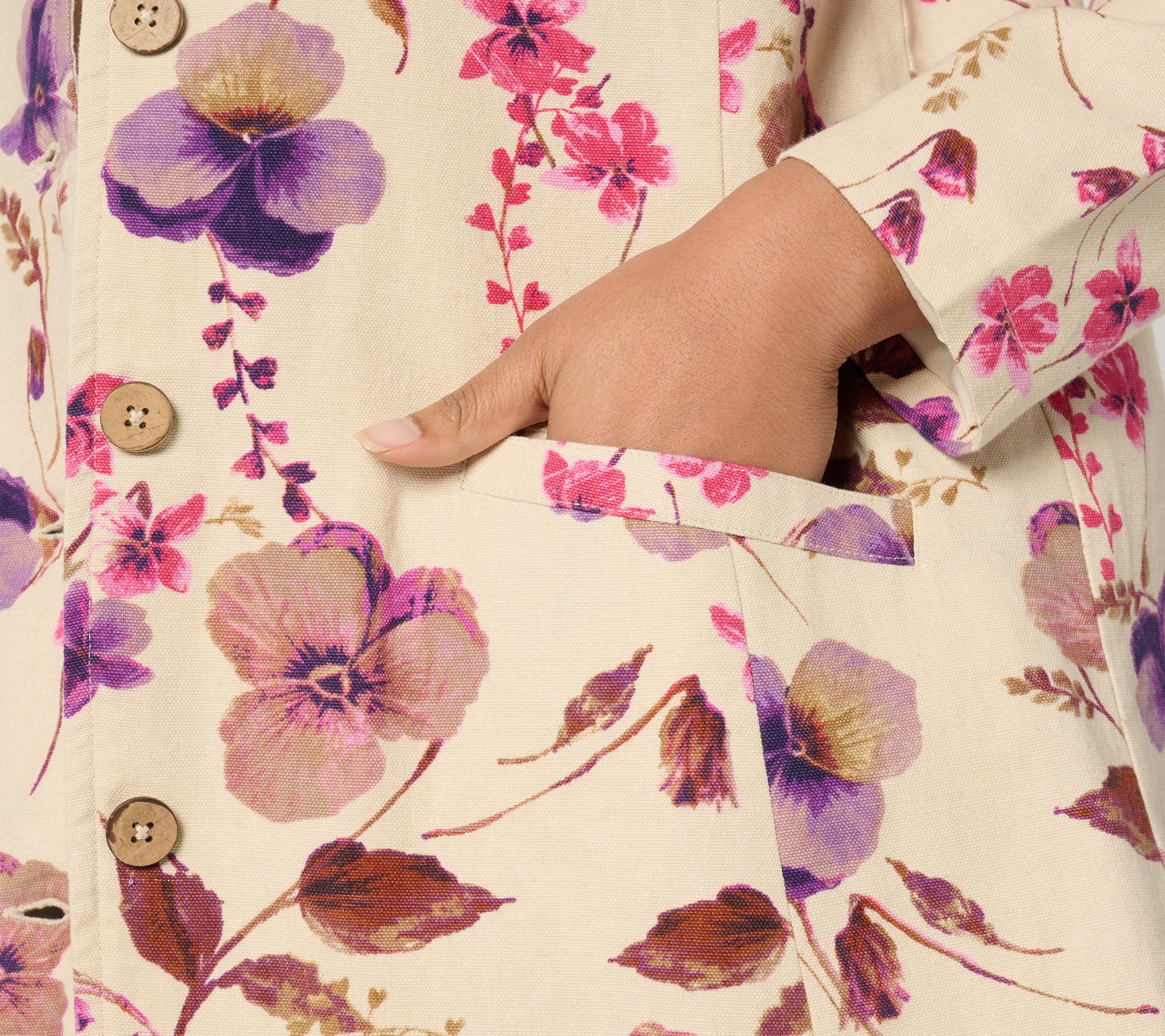"As Is" Susan Graver Regular Printed Cotton Button Swing Jacket