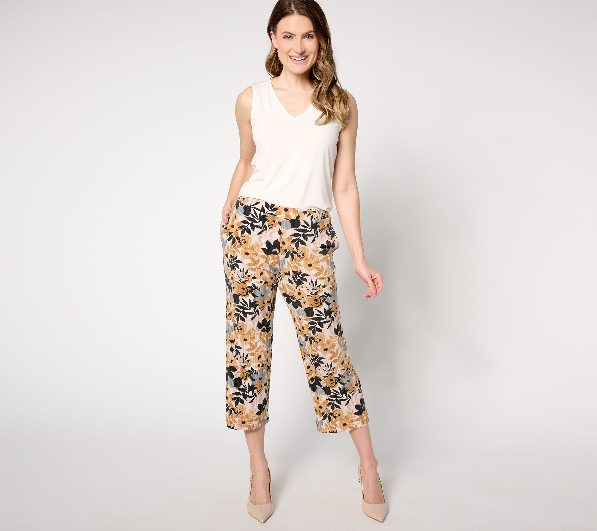 Undeniably chic, these Liquid Knit® pants showcase a fabulous floral print. The cropped length is just right for warm sunny days spent out and about. From Susan Graver.