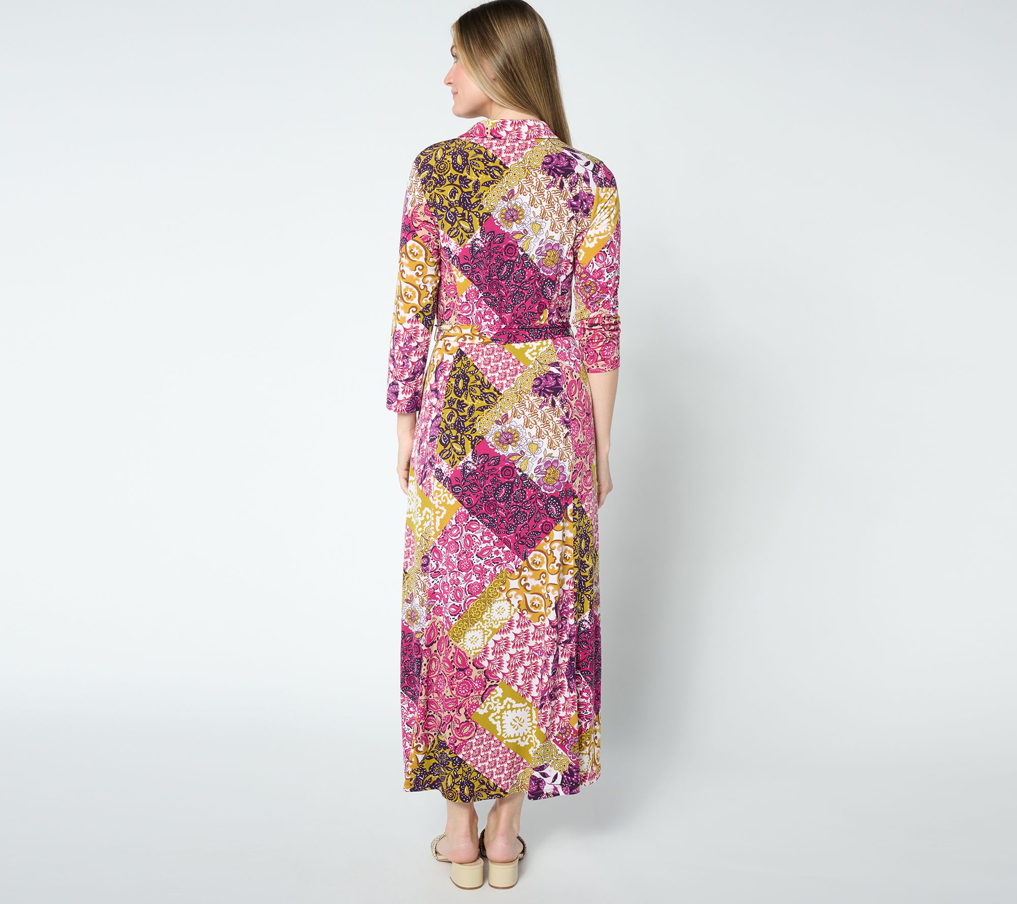 "As Is" Susan Graver Regular Printed Liquid Knit Belted Maxi Dress
