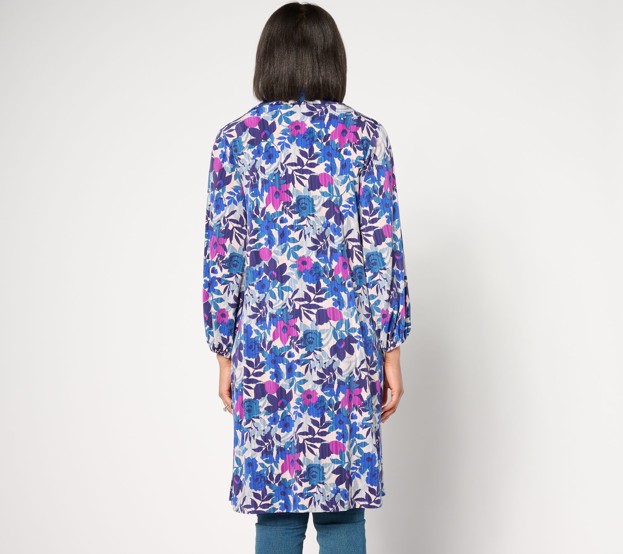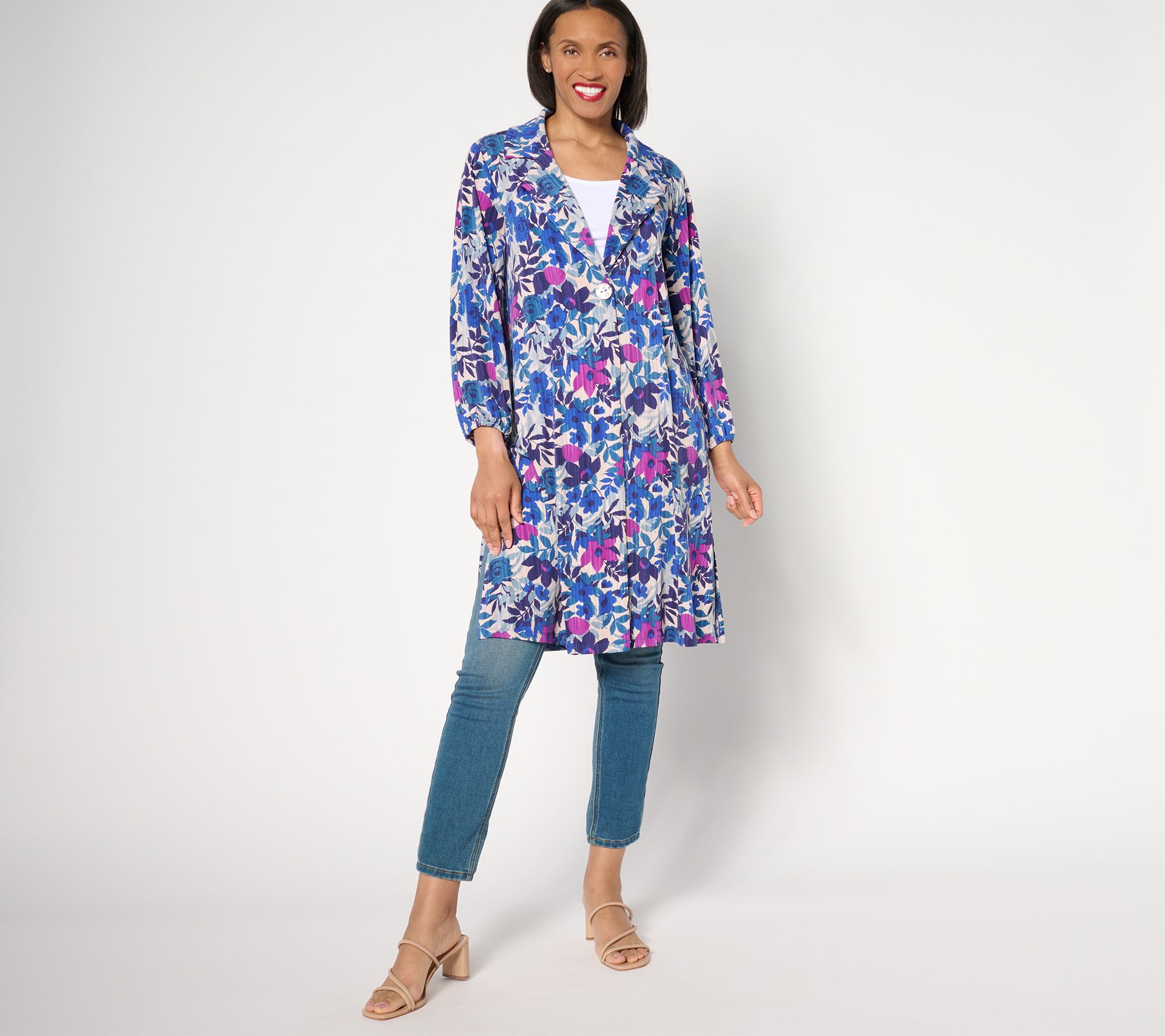 "As Is" Susan Graver Regular Printed Liquid Knit Duster w/ Blouson Sleeves