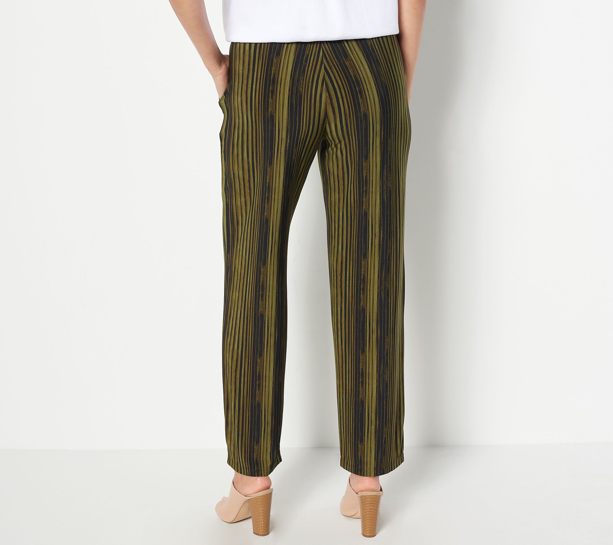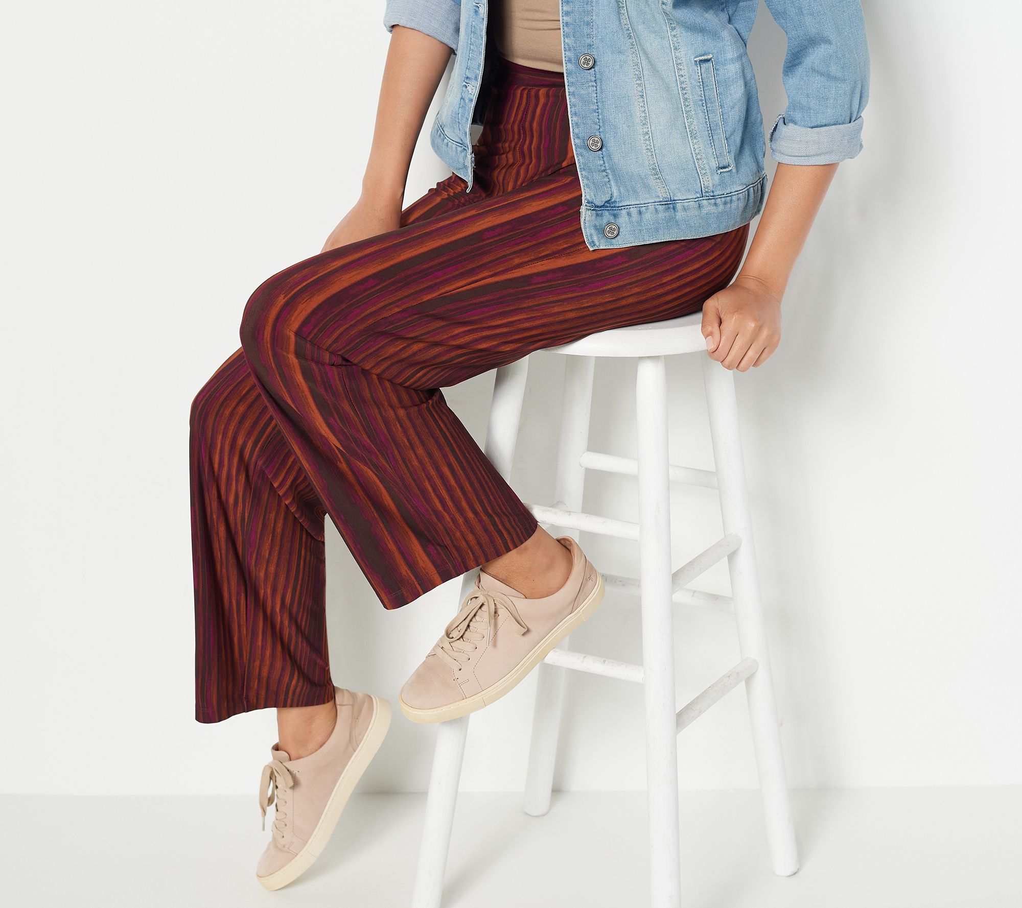 Soft Liquid Knit fabric combined with a stylish striped design? We'd say that's a win-win situation! Wear these pull-on pants with a t-shirt and a pair of cute kicks and you'll be ready to hit the streets in casual comfort. From Susan Graver.