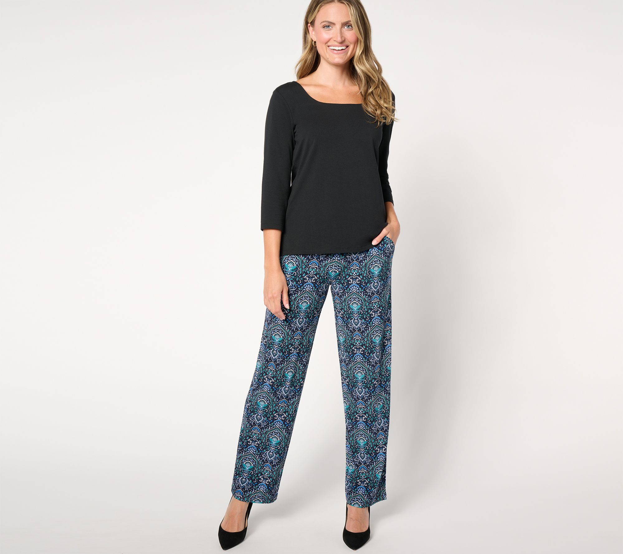 "As Is" Susan Graver Regular Printed Liquid Knit Sofia Straight Pants