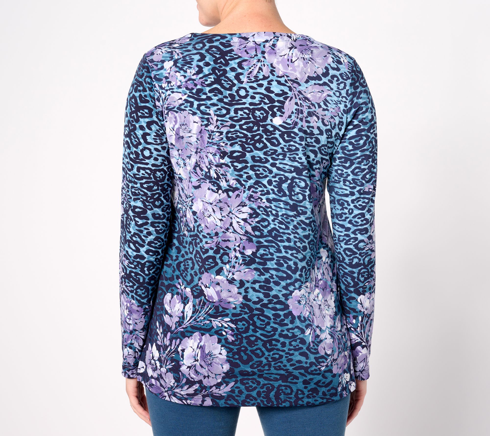 "As Is" Susan Graver Regular Printed Liquid Knit Split Neck Long Slv Tunic