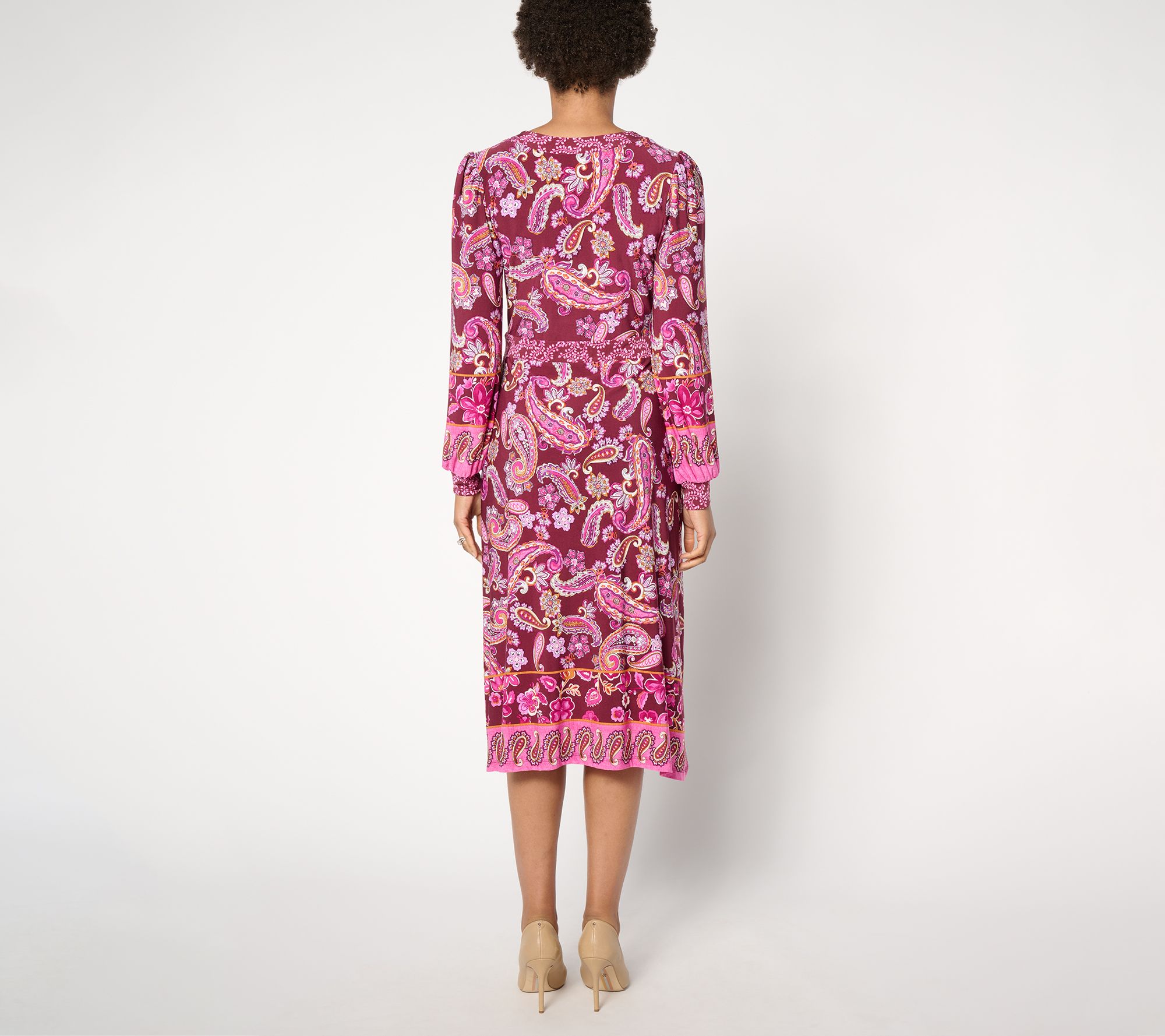 "As Is" Susan Graver Regular Printed Liquid Knit Split Neck Midi Dress