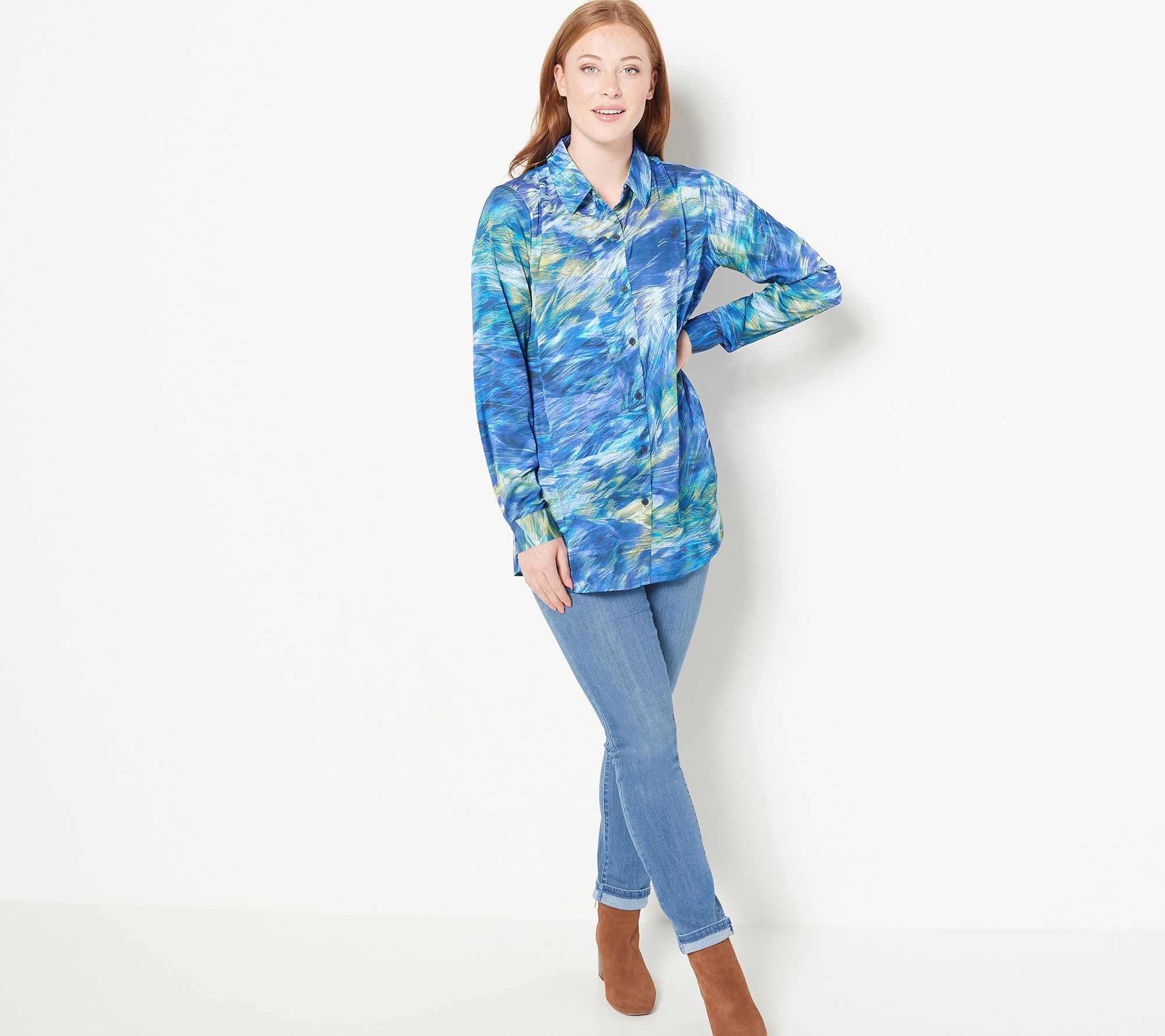 "As Is" Susan Graver Regular Printed Stretch Charmeuse Big Shirt