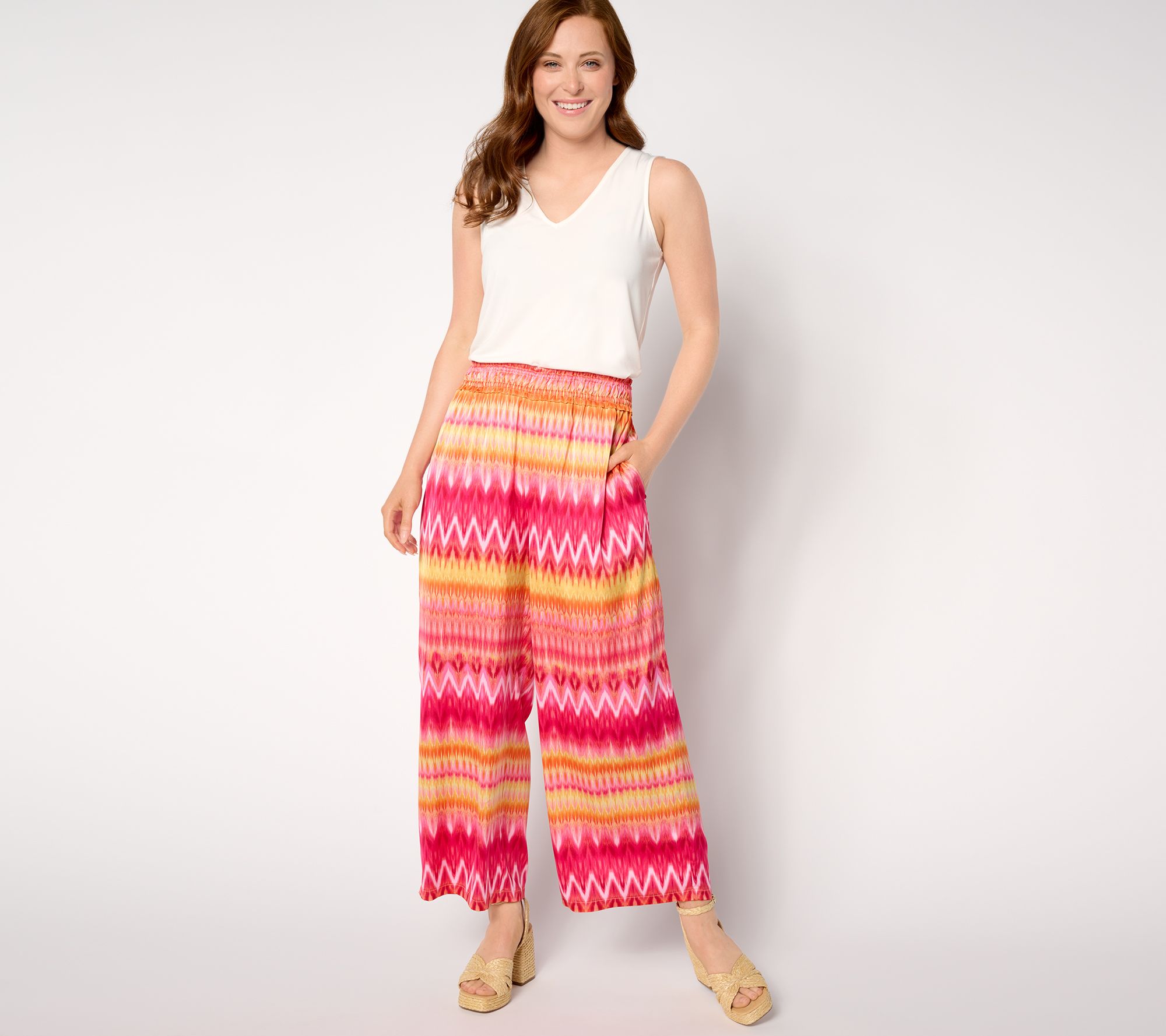 "As Is" Susan Graver Regular Printed Stretch Woven Wide Leg Ankle Pants