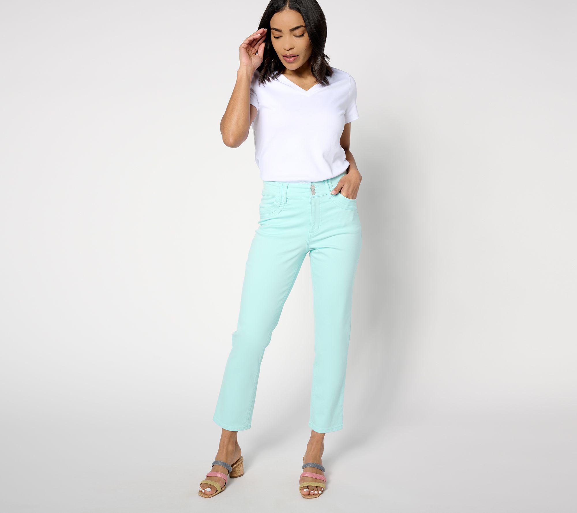 Nothing says it's springtime like a pair of cropped jeans in a beautiful hue. Add a printed blouse and some ballet flats into the mix and you're OOTD is complete. From Susan Graver.