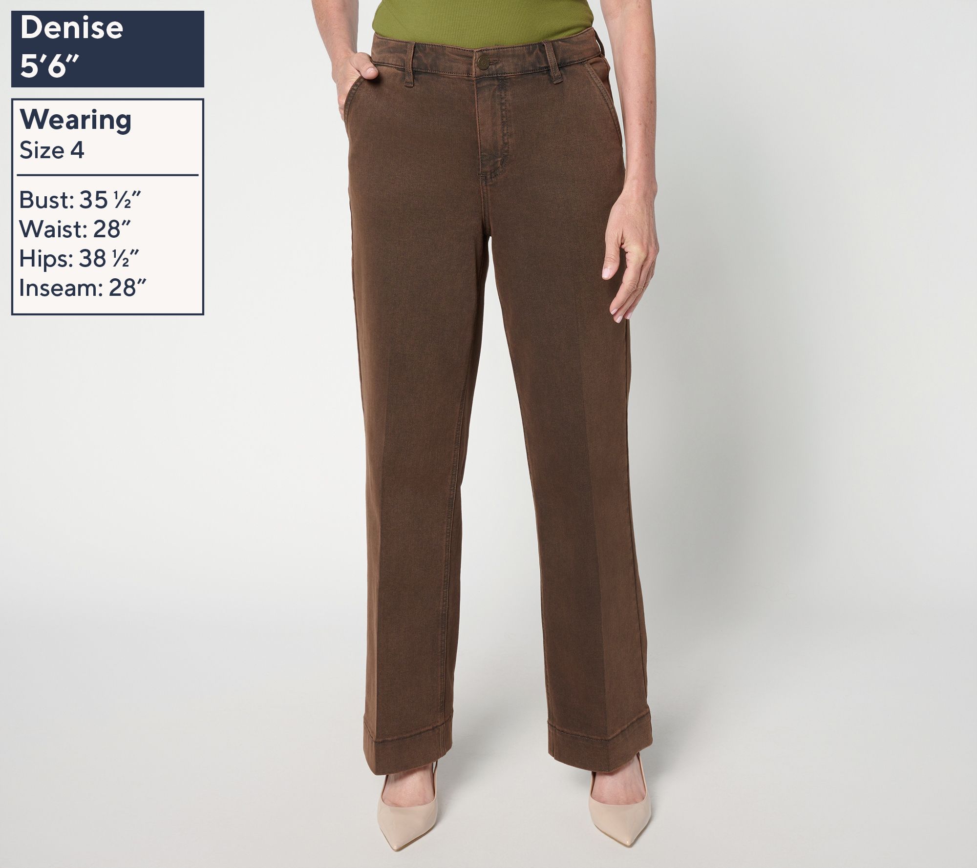 A sharp choice for desk days or dinner plans, these stretch denim trouser jeans easily adapt with dress up or down ease. Softly structured and smartly detailed with crease lines along the front and back, they offer on-trend wide-leg appeal, plus practical slash and back pockets for practicality. From Susan Graver.