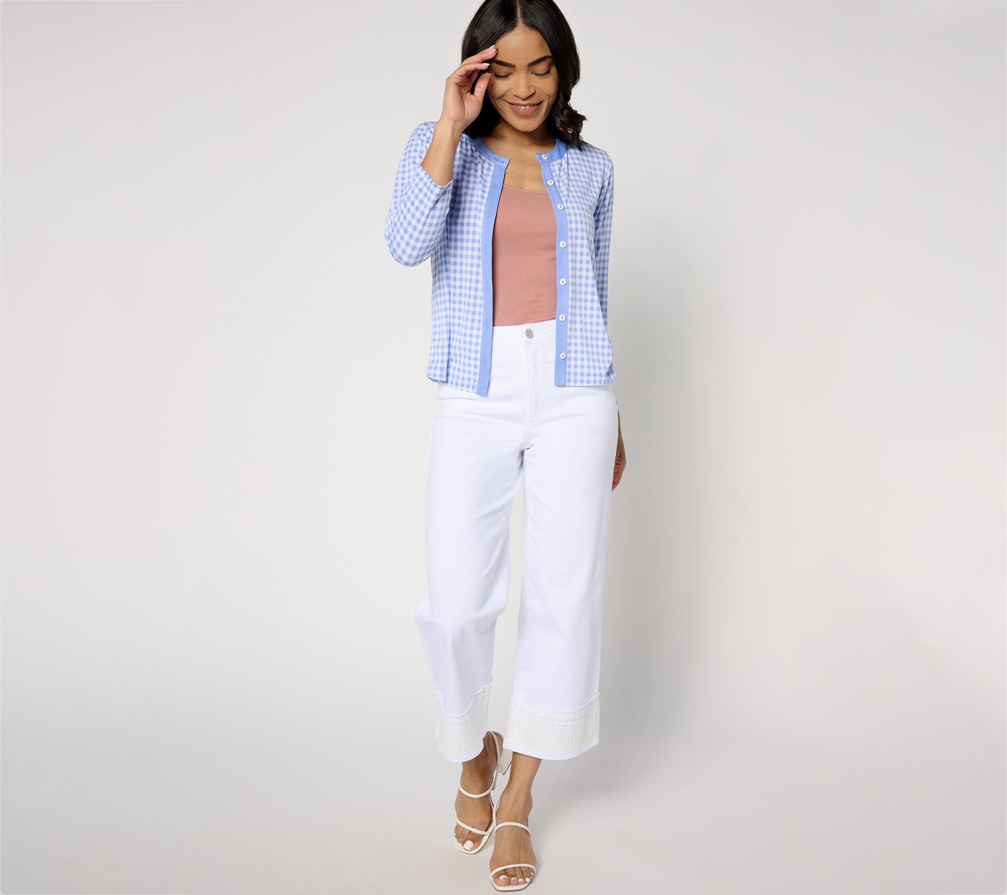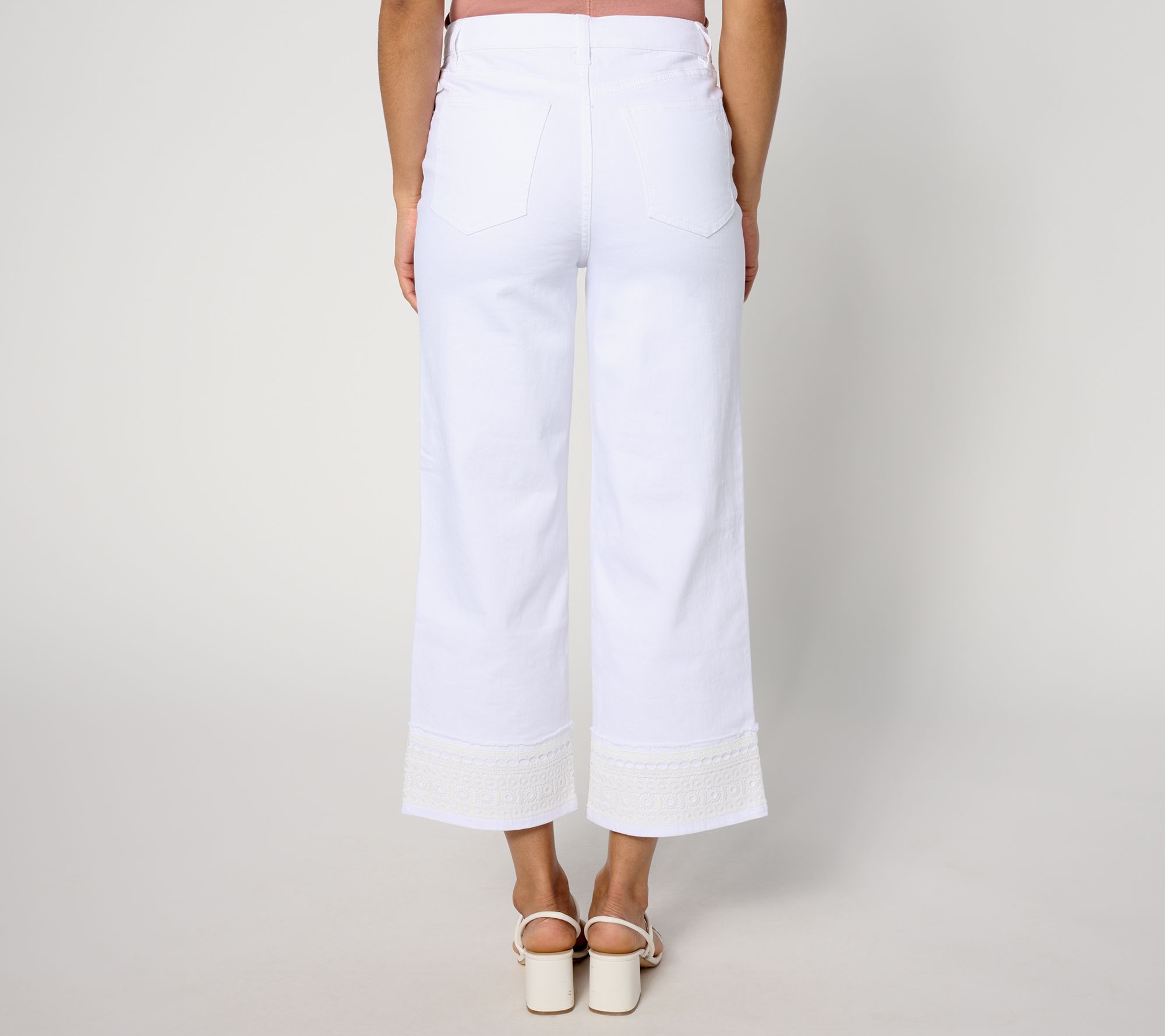 Feelin' fancy? A wide swath of charming lace trims these otherwise-casual stretch denim crops, designating them for brunch dates, vineyard tours, and stylish in-office days. From Susan Graver.