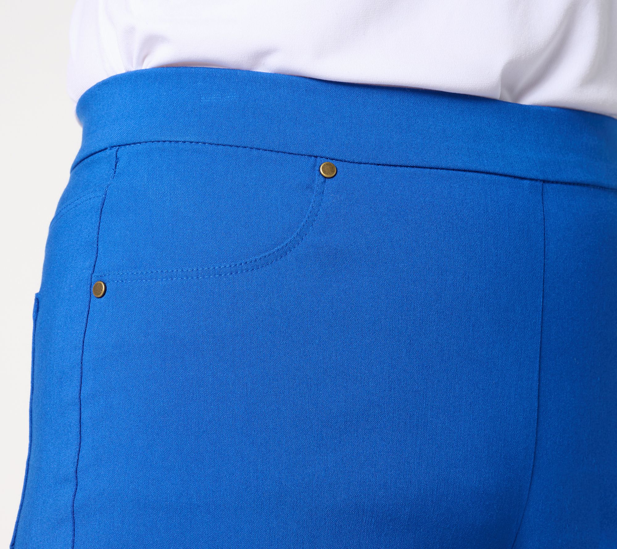 With a slim leg silhouette, this stretch pants hug your frame and accentuate your curves. Work this everyday style into your weekly rotation along with your sleeveless tops, button-front blouses, and short-sleeve summer sweaters. From Susan Graver.