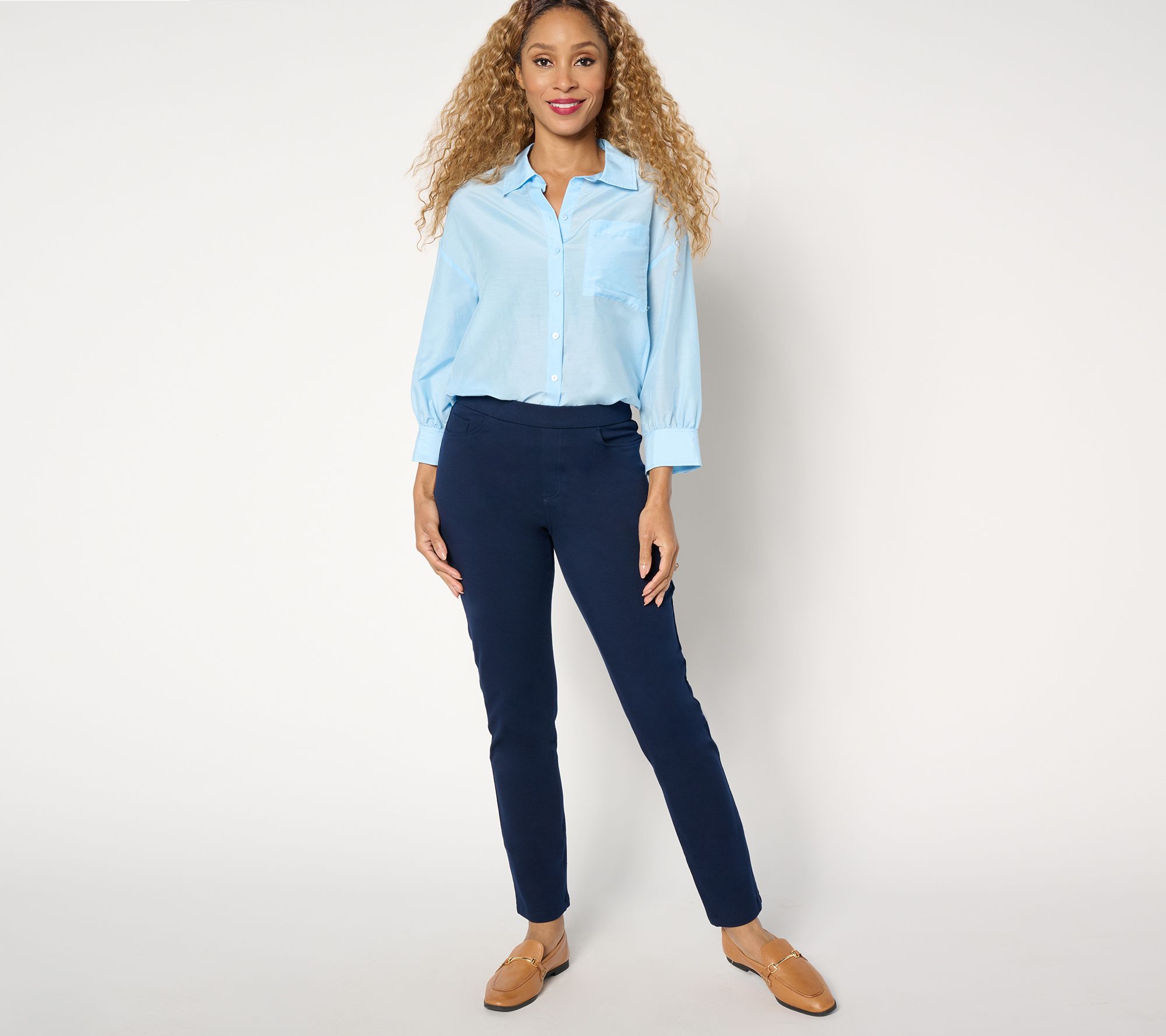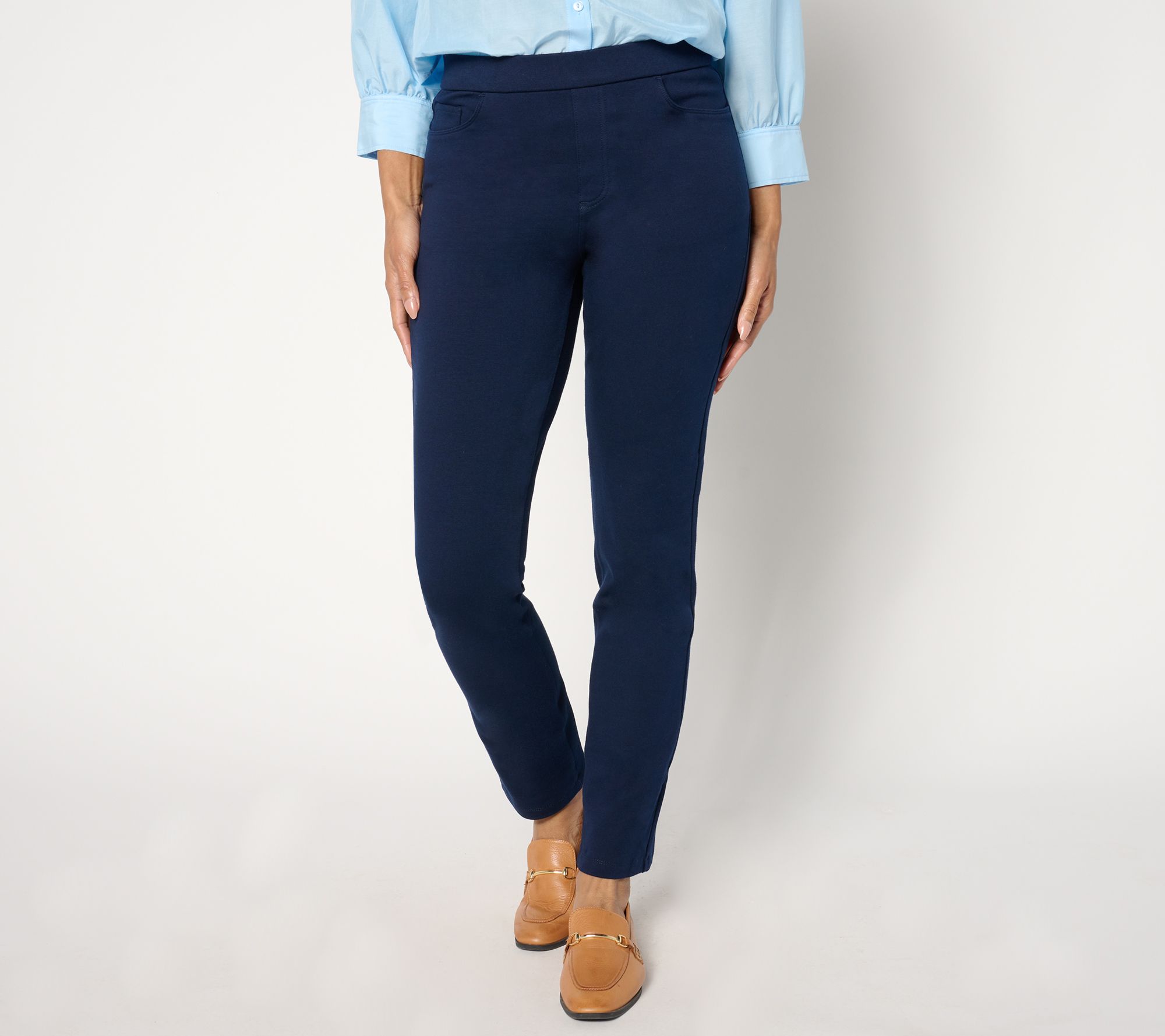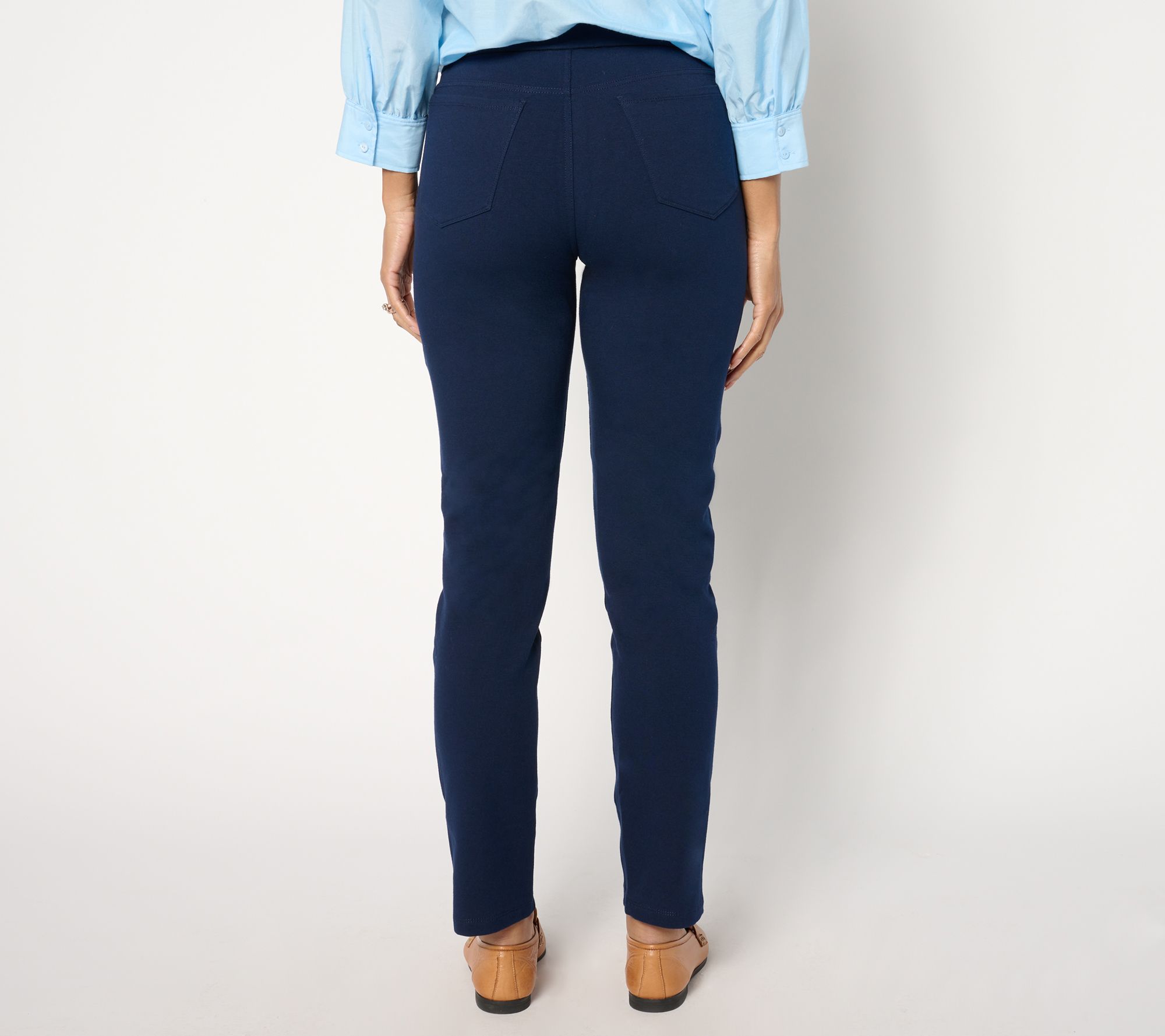 "As Is" Susan Graver Regular Weekend French Terry 5-Pocket Faux Fly Pants
