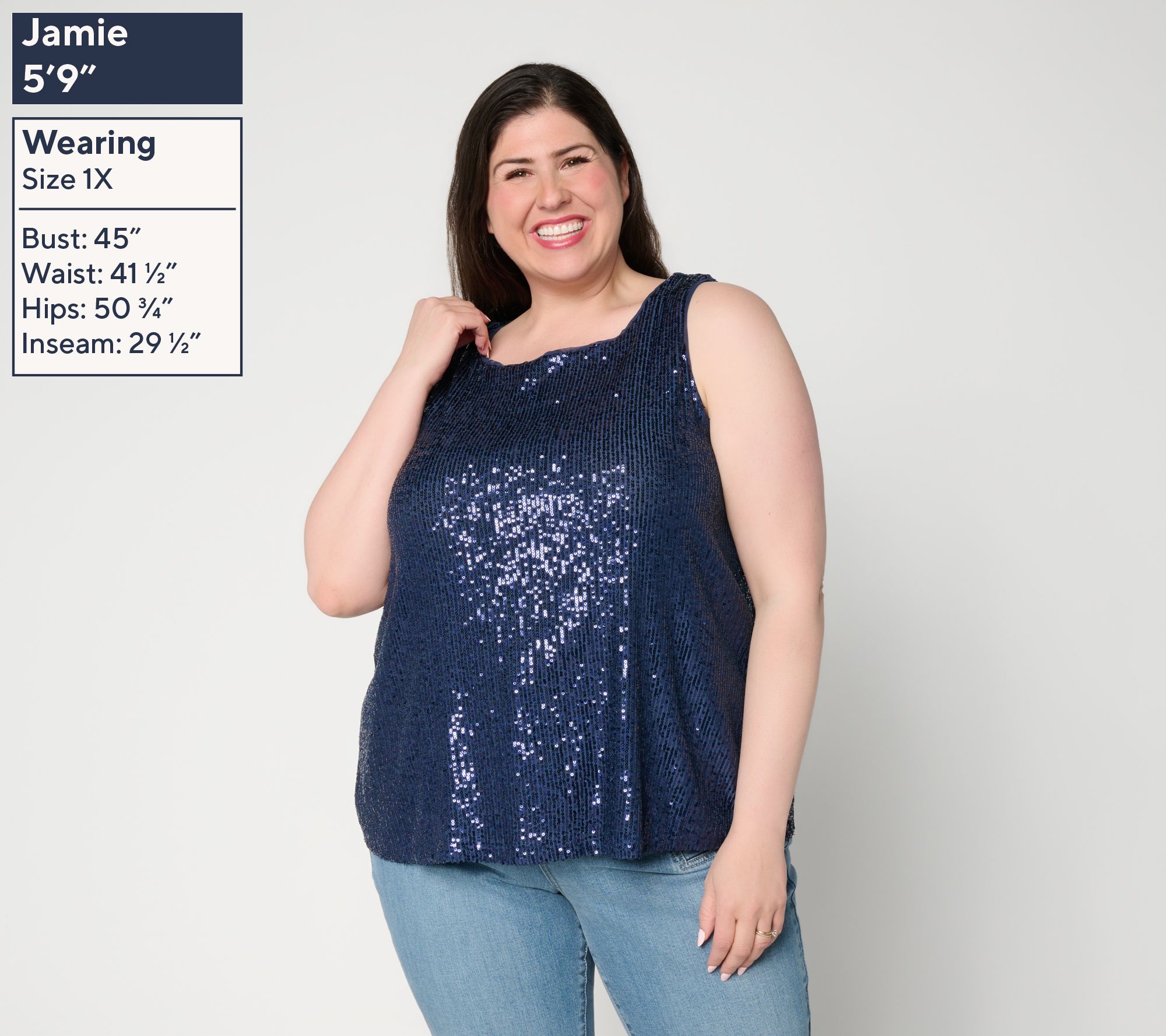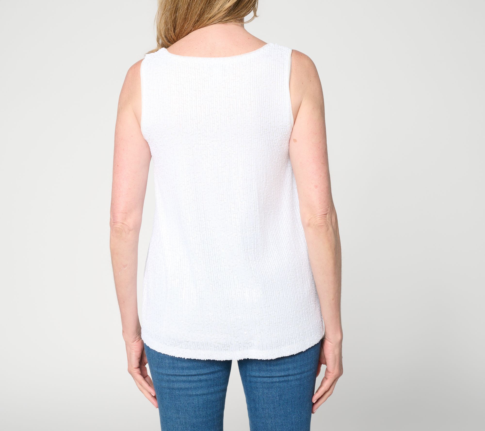 Bring sparkle and shine to summertime! Don't save the sequins just for end-of-year celebrations -- bring the bling 12 months of the year with this mesh-lined sequin top. The sleeveless stunner can go solo in summer when paired with skirts, capris, or crops. Then, layer it with a jacket or cardi when cooler breezes start to blow. Your glam game is strong with this one. From Susan Graver.