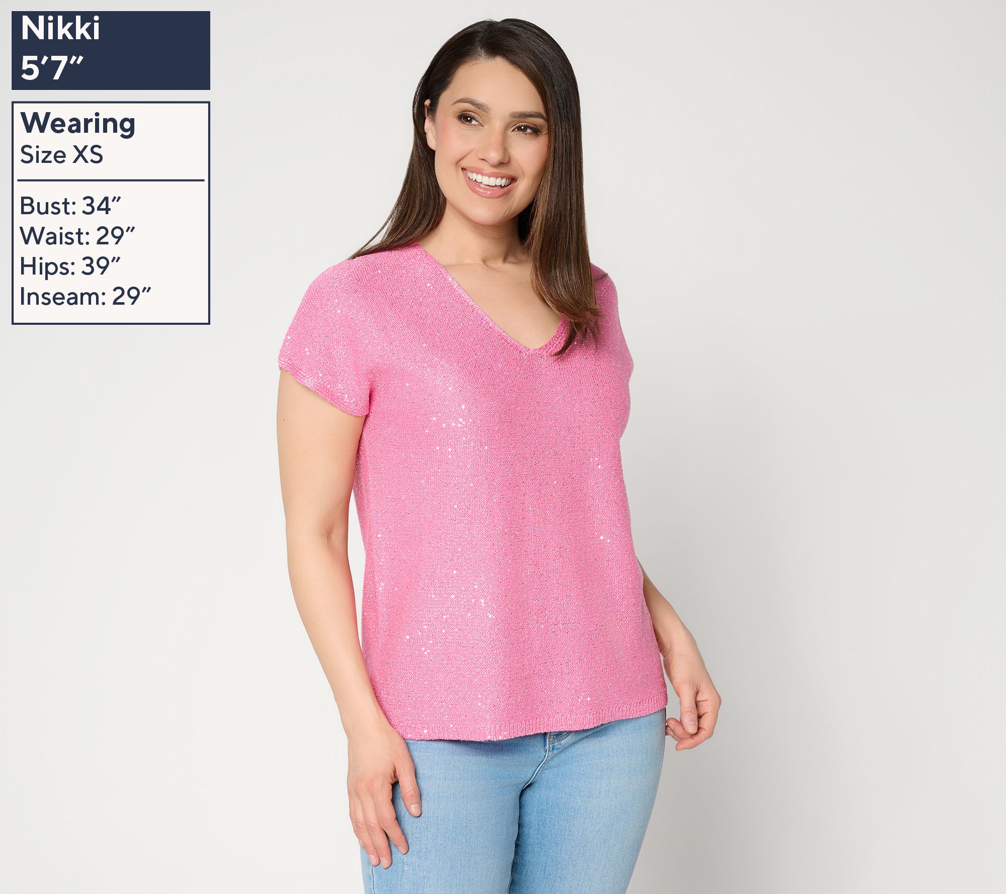 "As Is" Susan Graver Sequin V-Neck Extended Sleeve Knit Top
