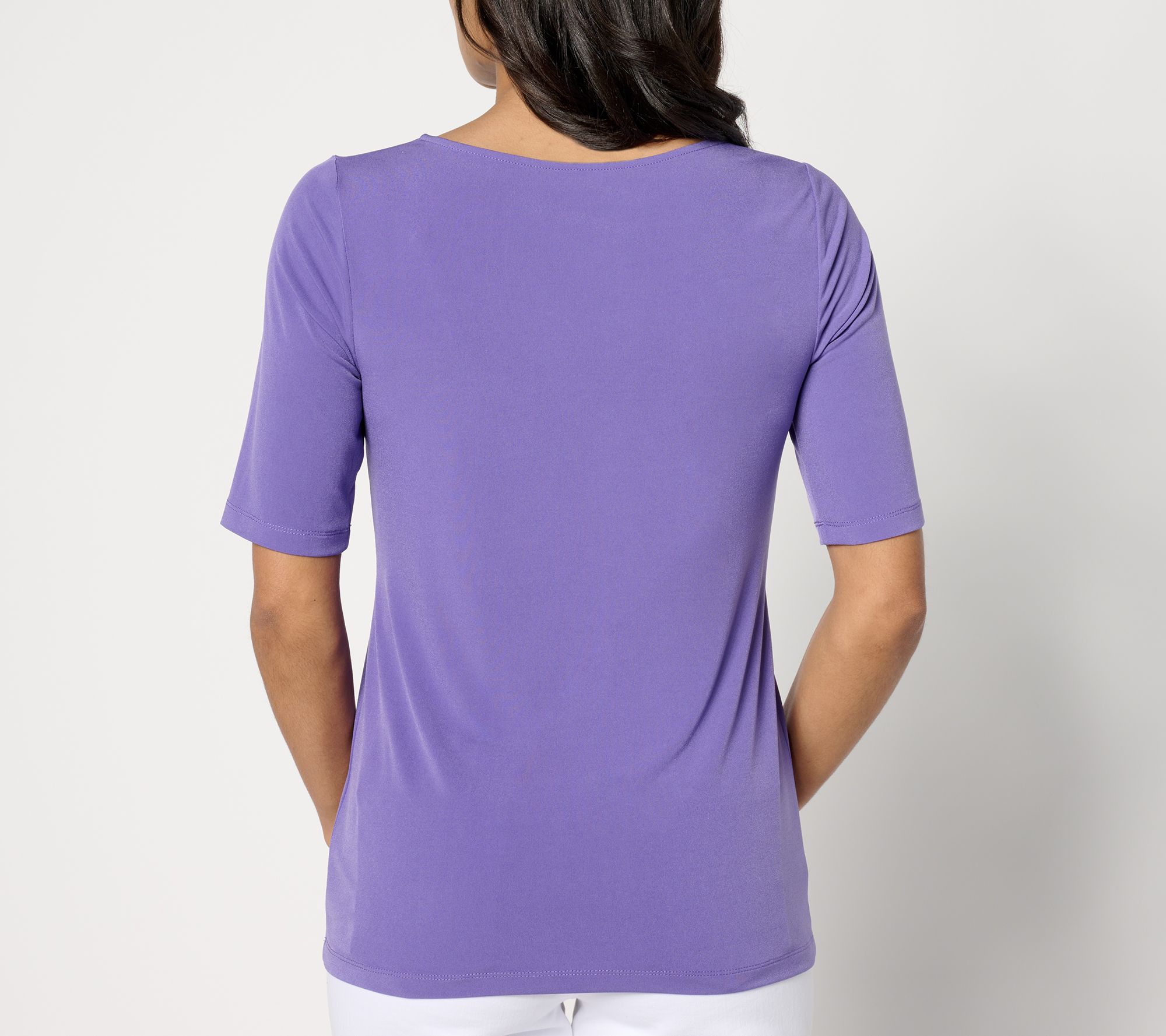 "As Is" Susan Graver Sleek Essentials Liquid Knit Elbow Slv Top