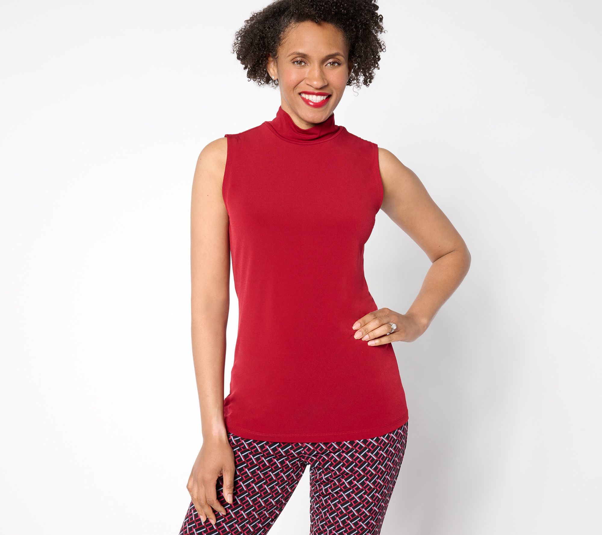 Get back to essentials. Layered under a cardi or blazer or coupled only with wide-leg trousers or your favorite denim, this sleeveless Liquid Knit® mock neck top earns its spot in your capsule wardrobe. From Susan Graver.