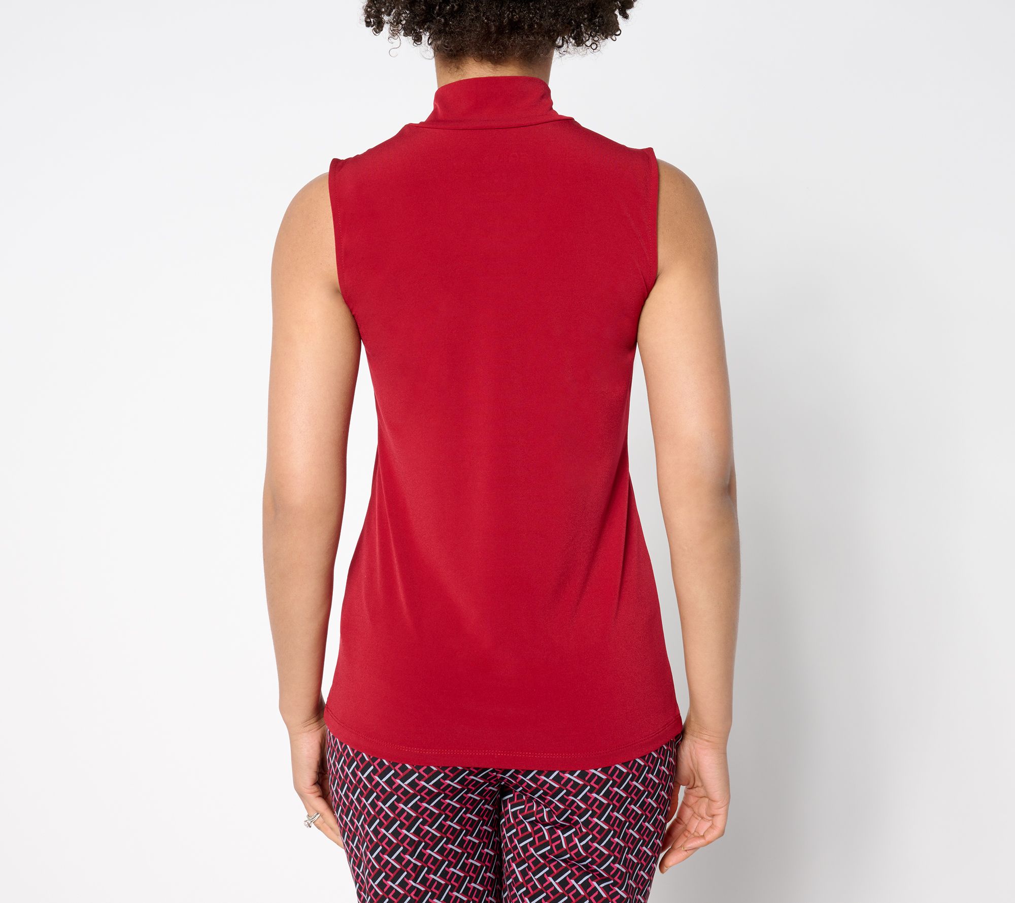 • Features: mock neckline, sleeveless, solid color