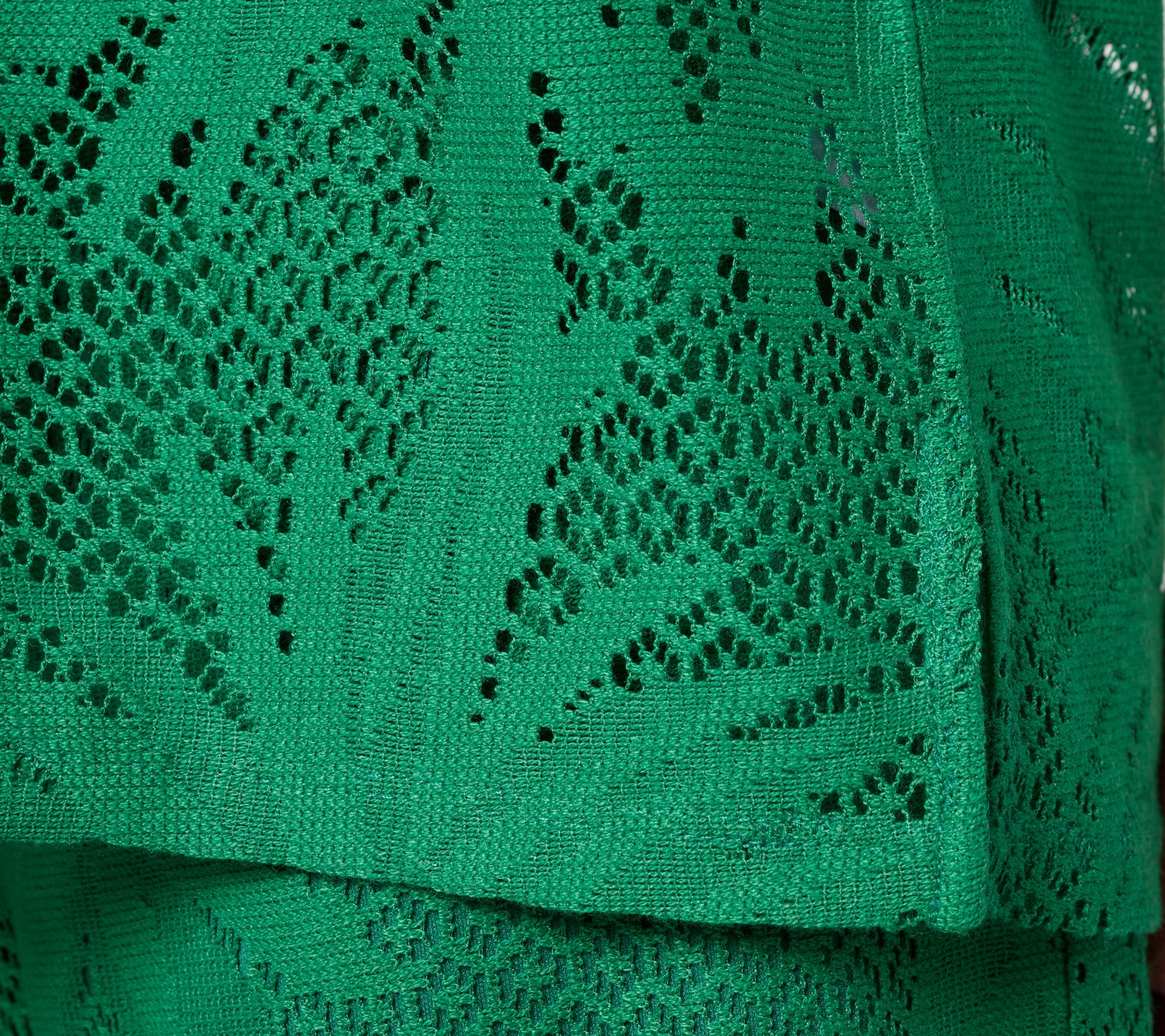 Pop on this lace knit tunic and you're on island time! It's breezy, open-air style layers beautifully over your own cami or tank, instantly dressing up denim capris or white crops. For evenings, pair it with silky wide-leg pants for a head-turning look. (Umbrella drink, anyone?) From Susan Graver.