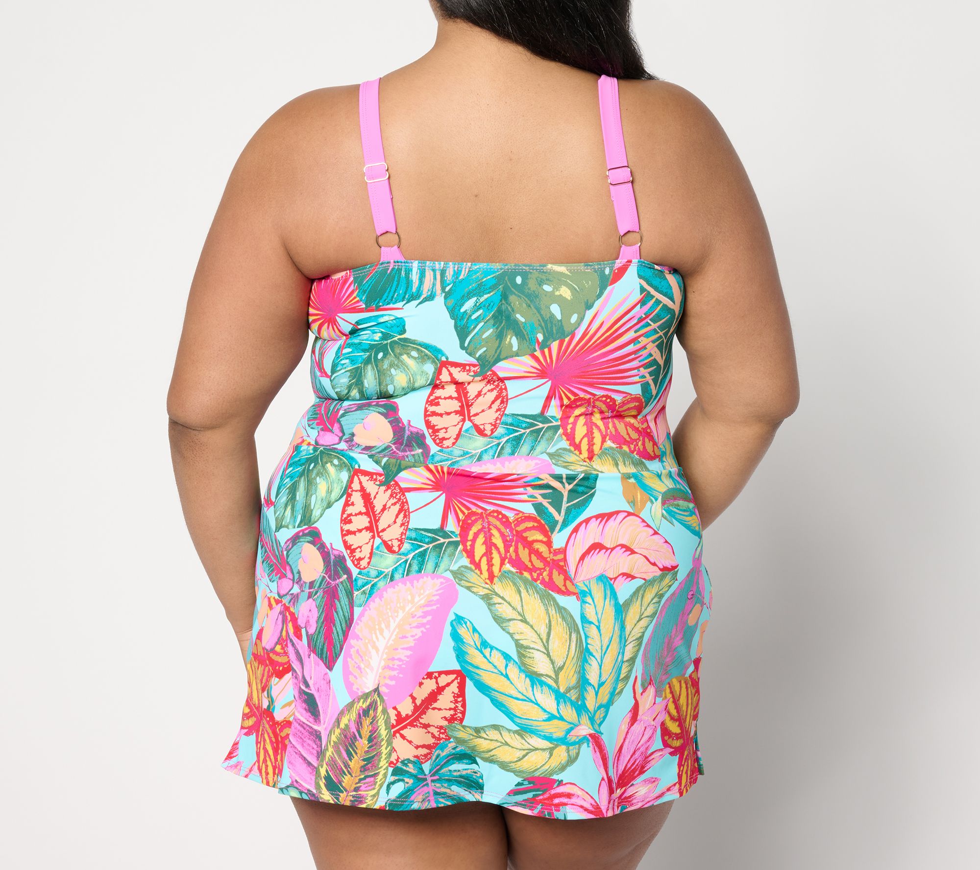 It may look like a sporty tennis dress, but this skirted style is built for the pool... or the beach... or the snack bar! A front mesh lining and full tacked cups help provide the support you need while splashing, picking up the paddleball, or grabbing a refreshment. From Susan Graver.