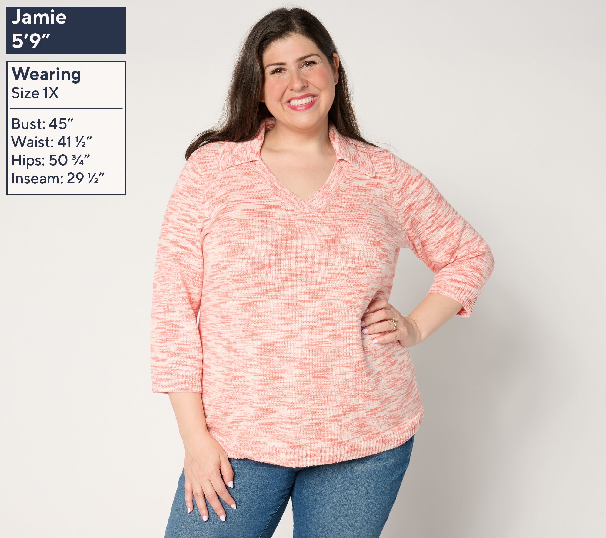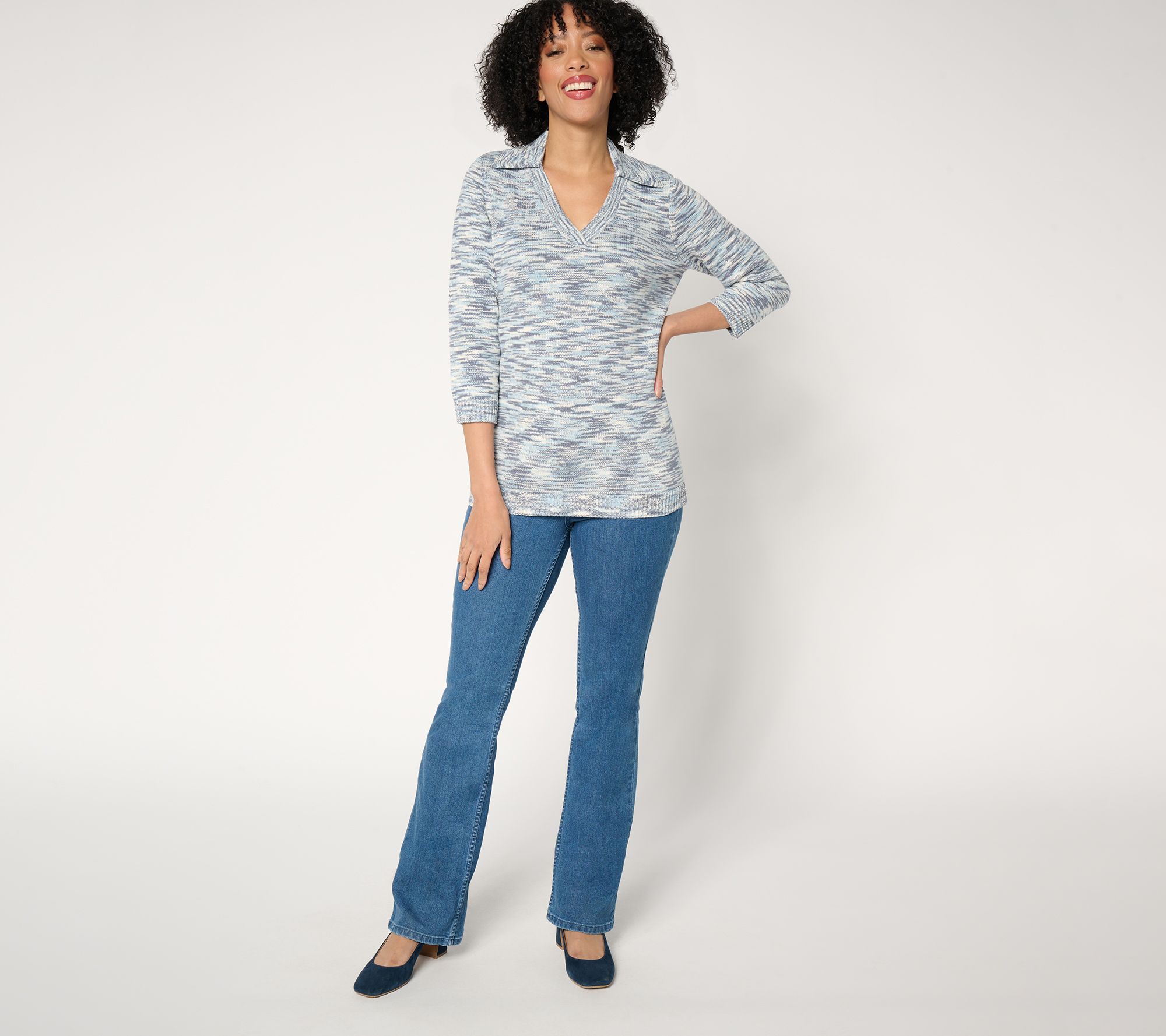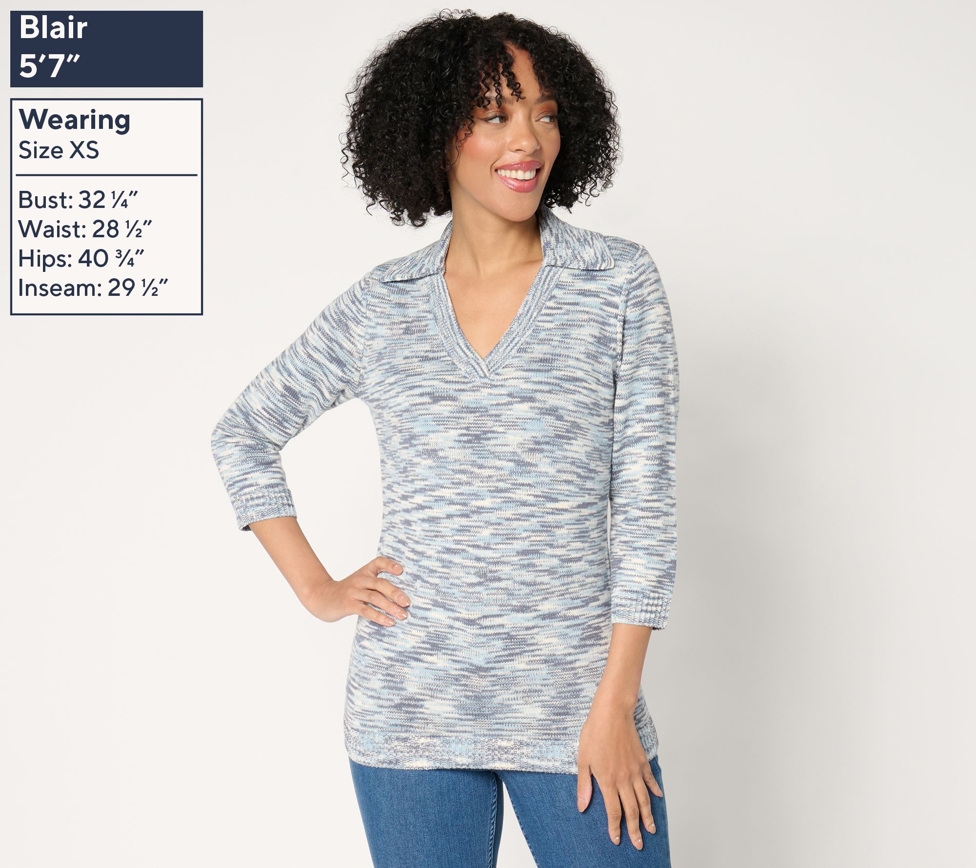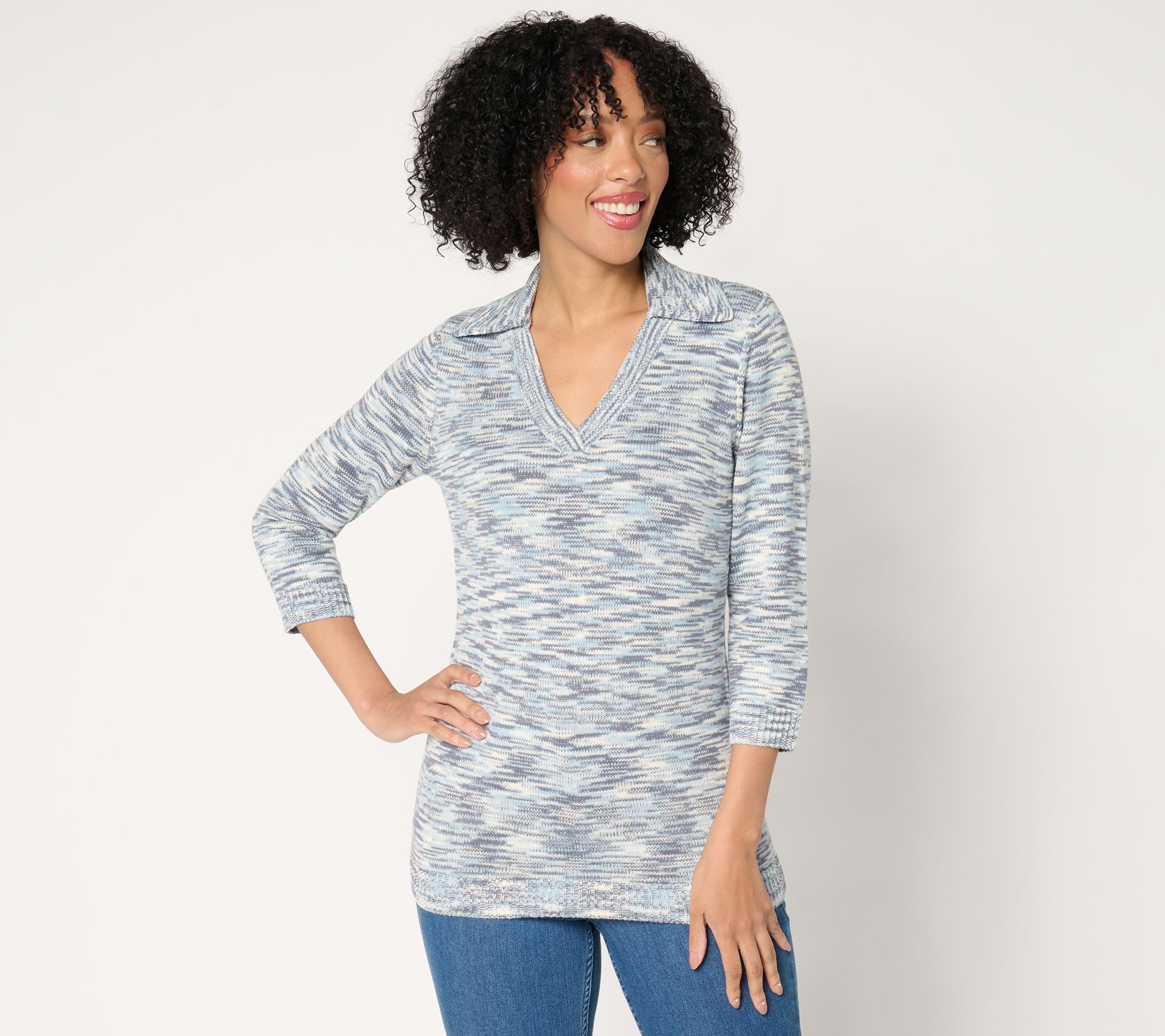 "As Is" Susan Graver Split Neck Elbow Sleeve Sweater