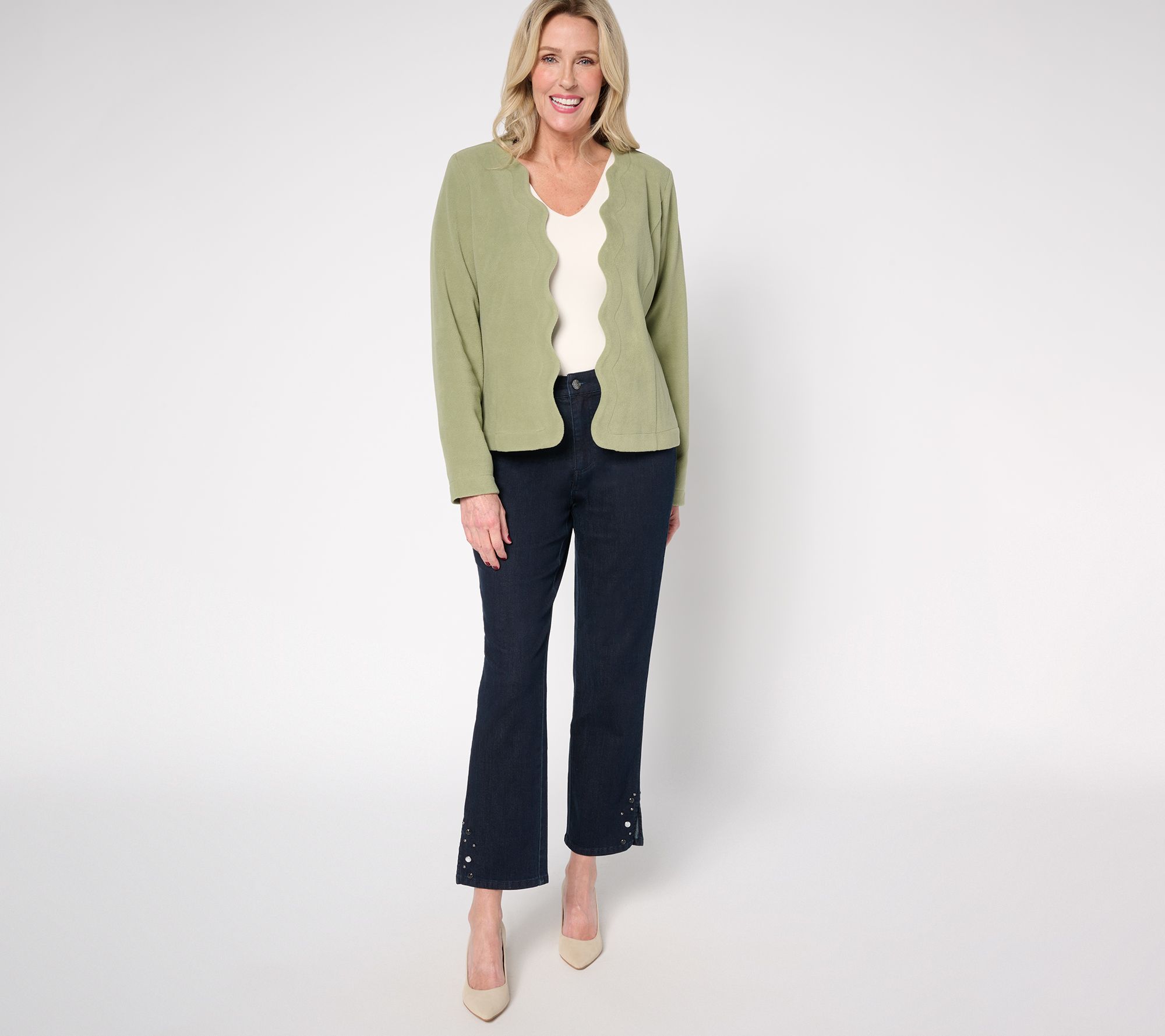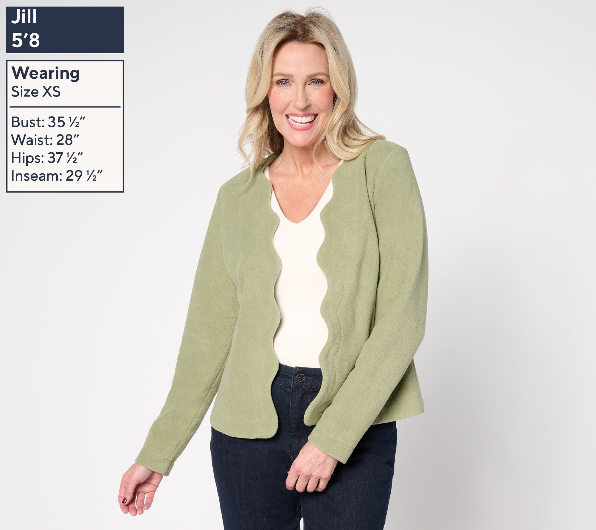 "As Is" Susan Graver Spring Fleece Open Front Jacket w/ Scallop Edges