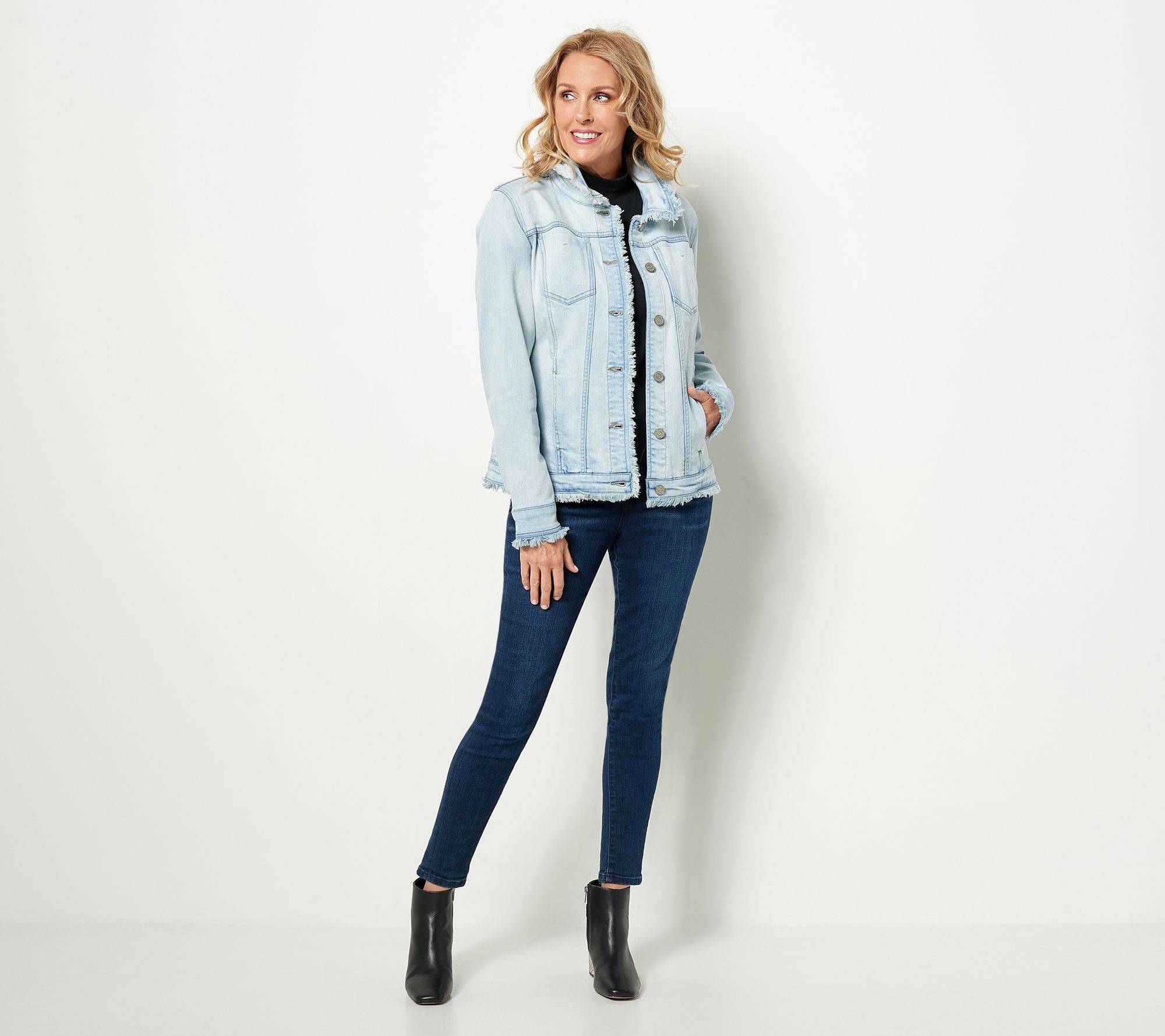 "As Is" Susan Graver Stretch Denim Button- Front Frayed Jean Jacket