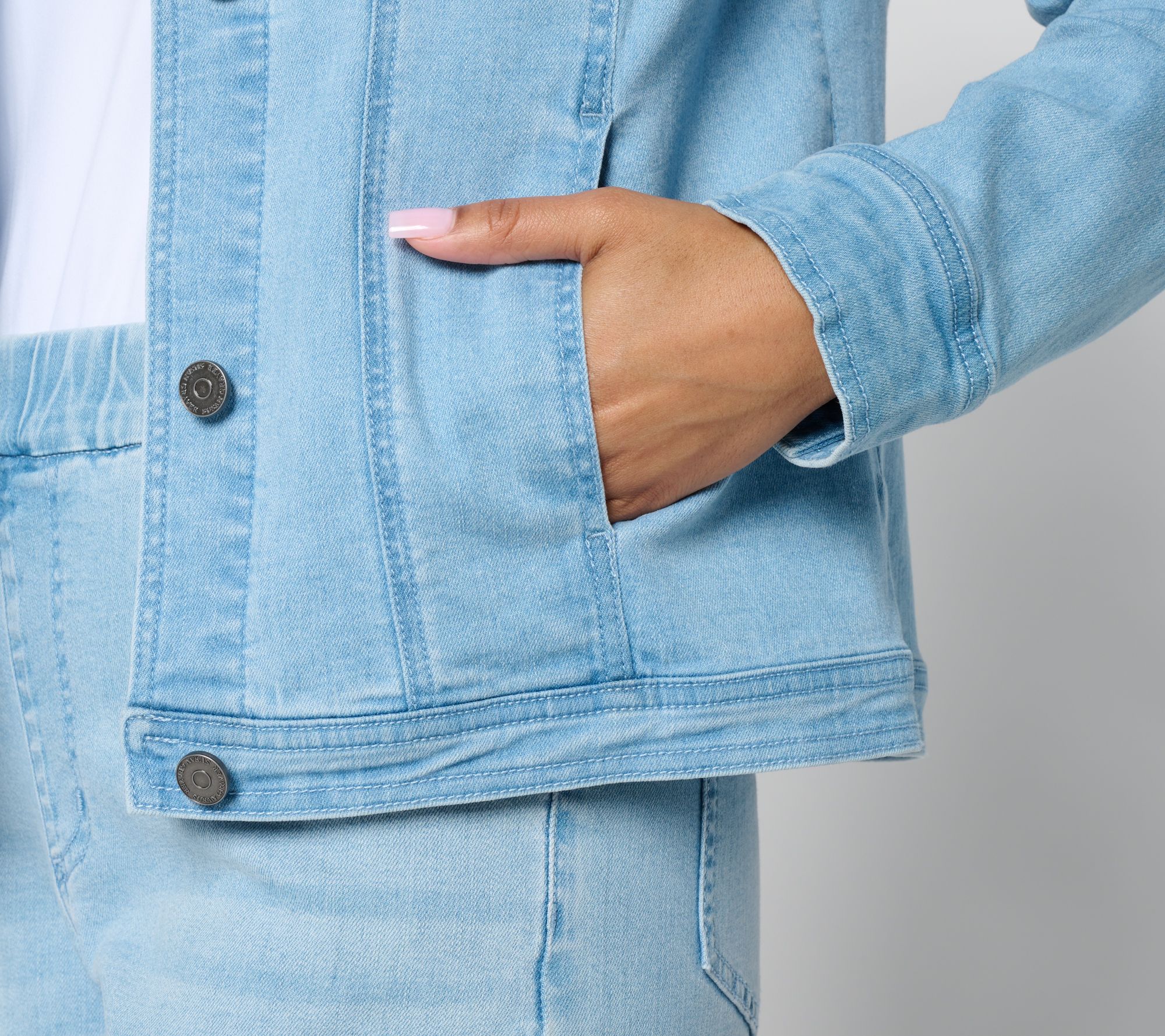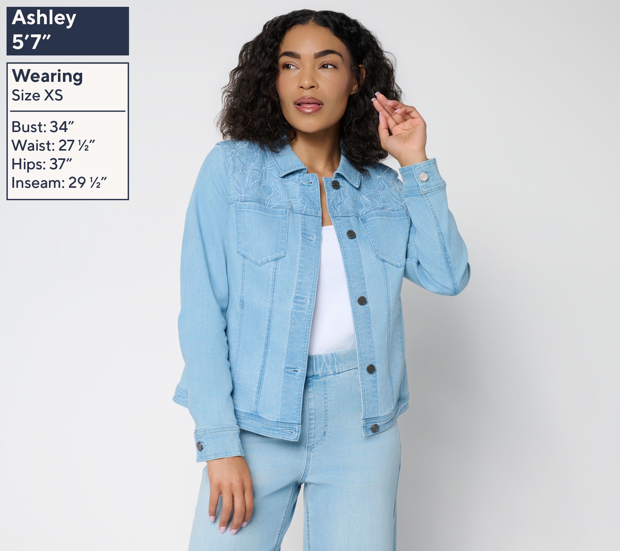 There's jean jackets, and then there's dream jackets. Susan Graver lends her designer artistry to this denim layer, adding fun floral embroidery to the top (and back!) for a chic boutique feel. And the added stretch? Pure perfection! From Susan Graver.