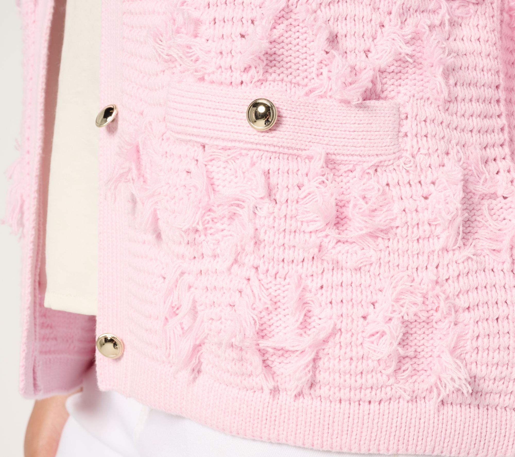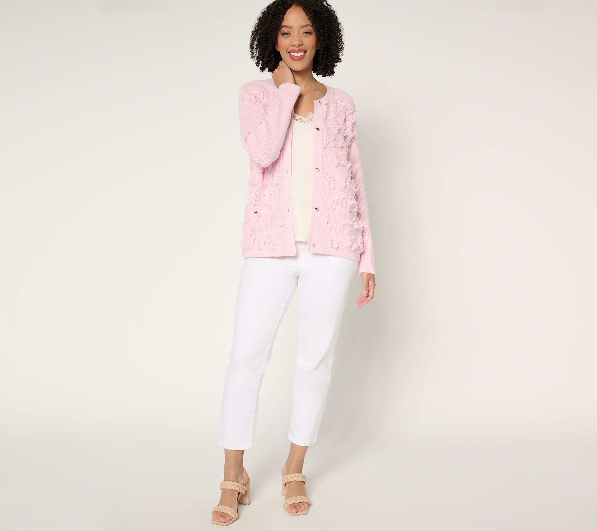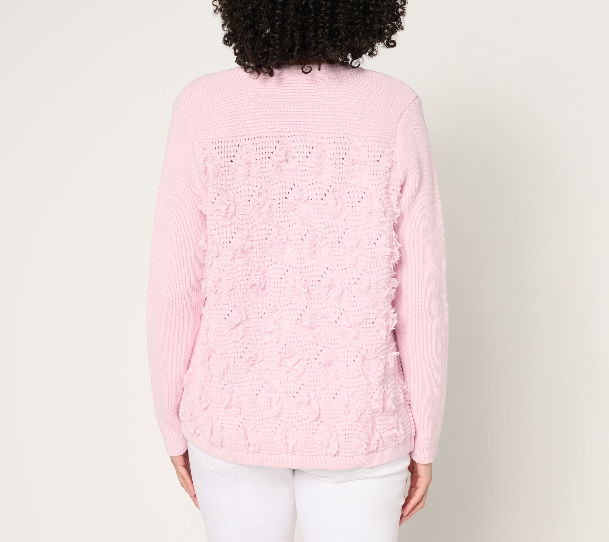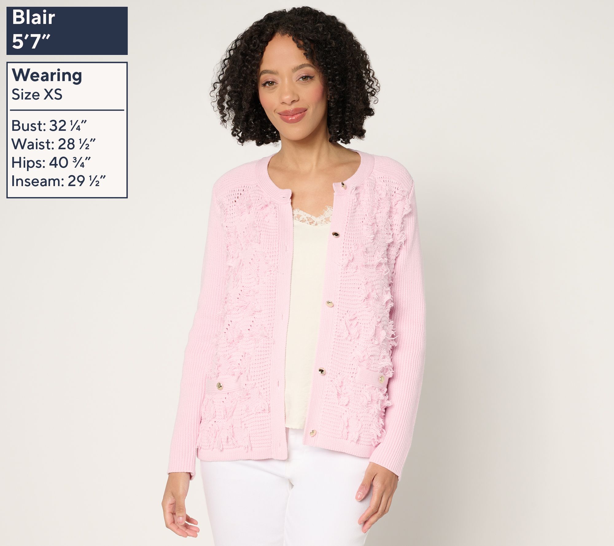 "As Is" Susan Graver Textured Fringe Knit Button Front Cardigan