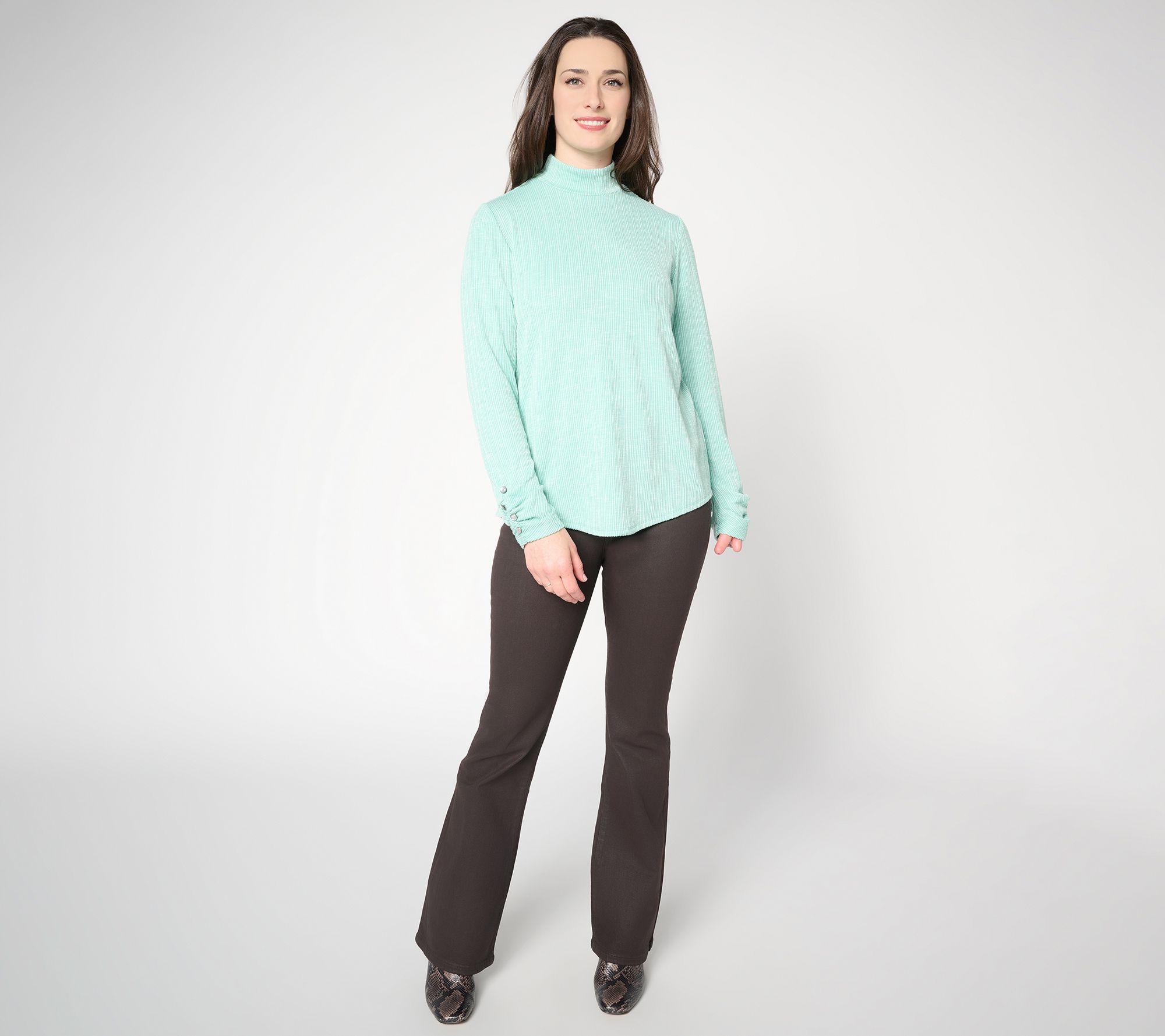 "As Is" Susan Graver Textured Rib Knit Mock Neck Top