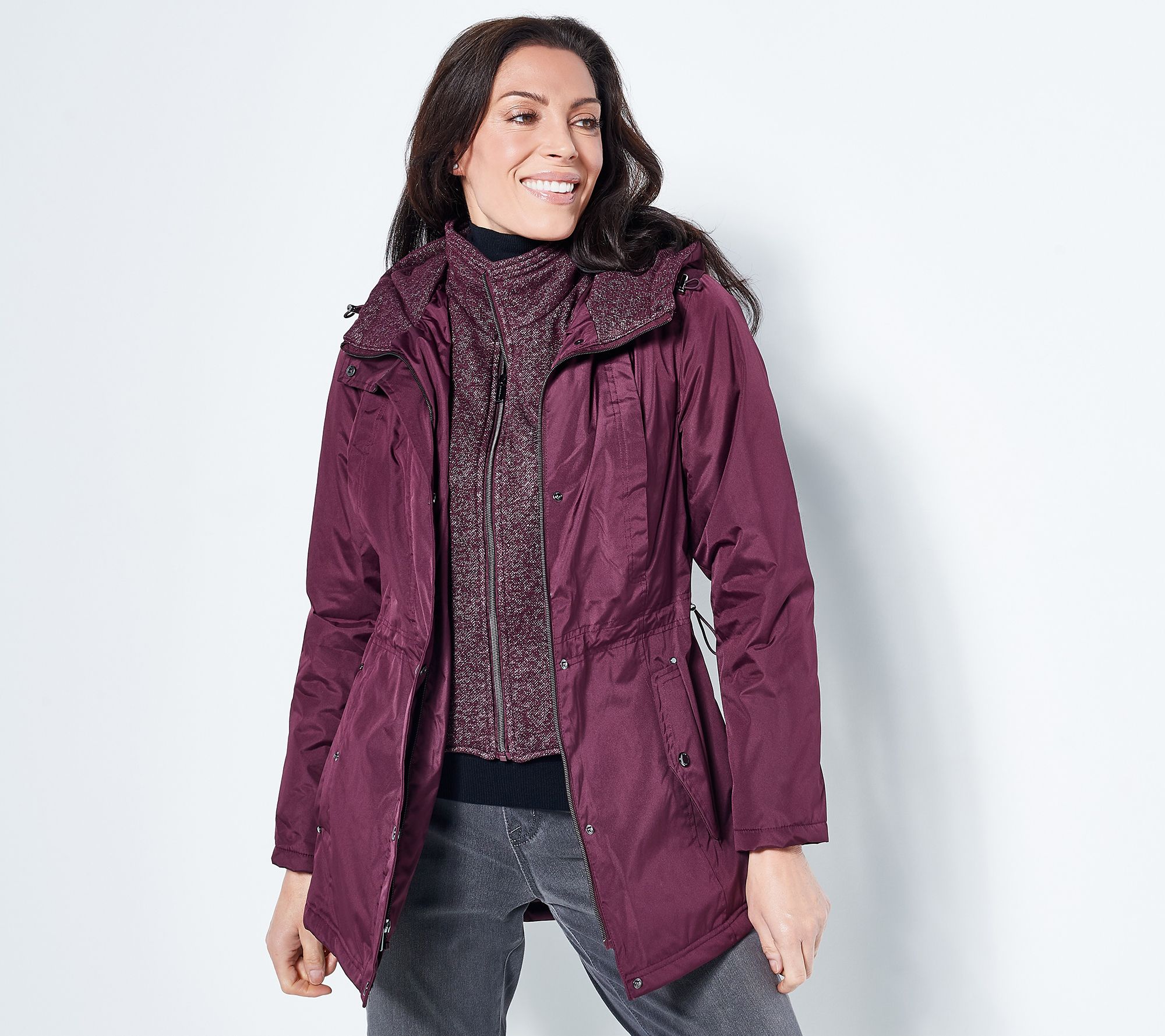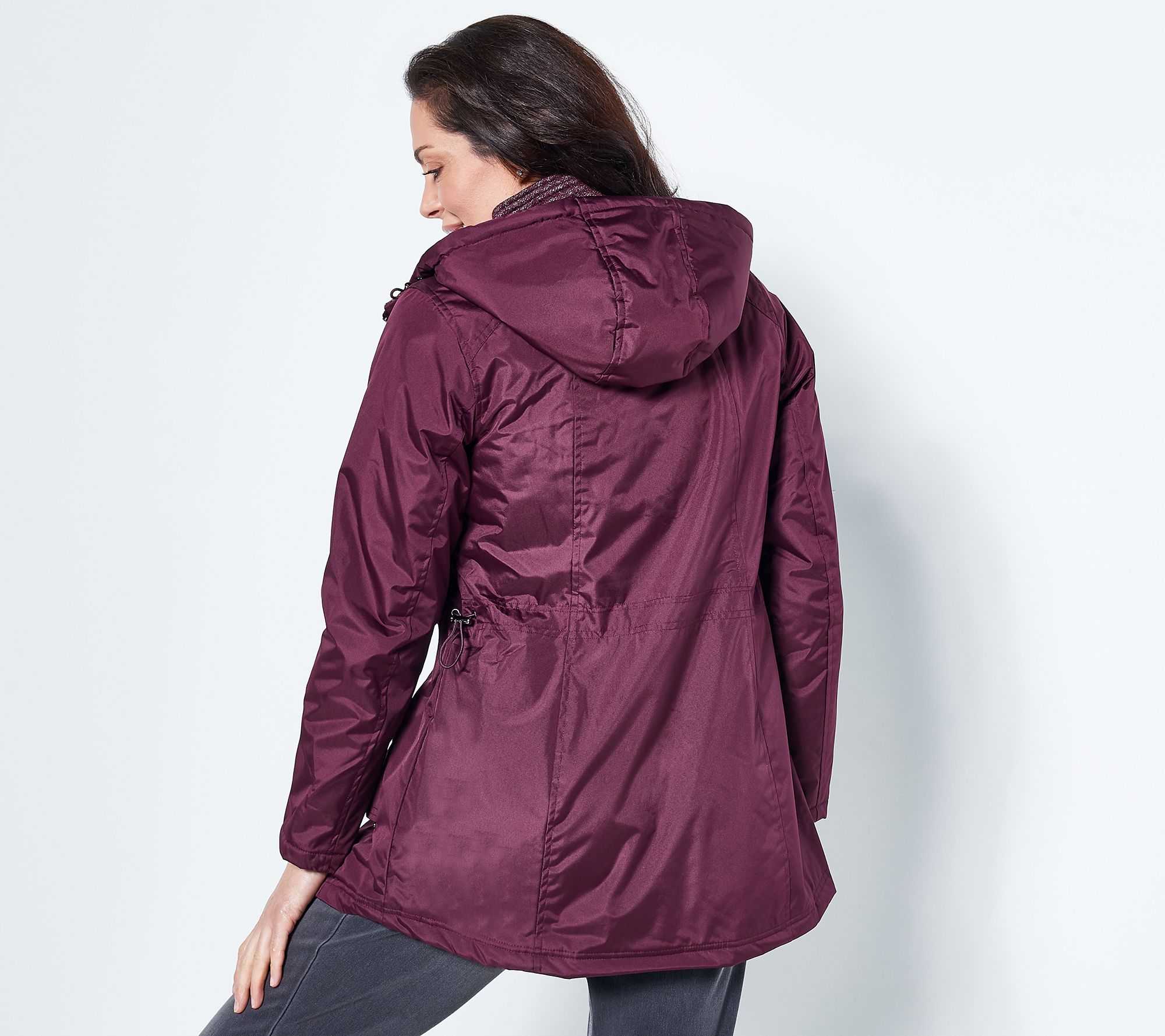 Sleek. Simple. Water-resistant. Hooded. It's all you need in a jacket. But when you get fleece lining, too? Well, that hits it out of the park. From Susan Graver.