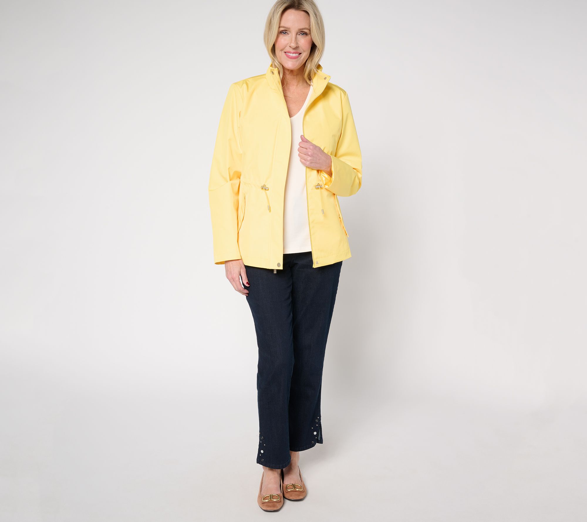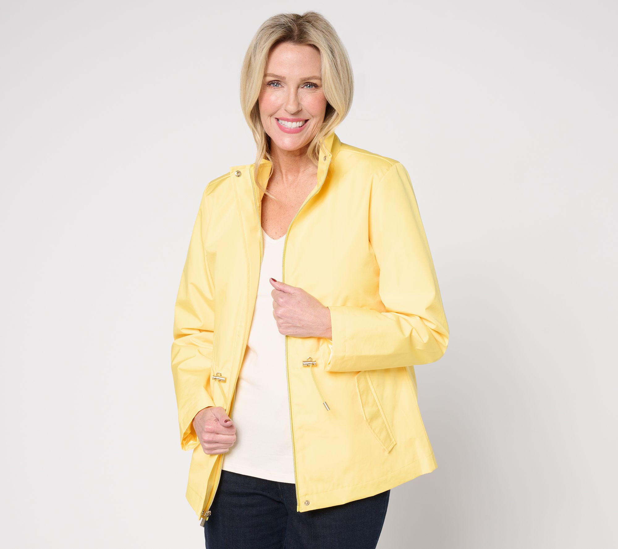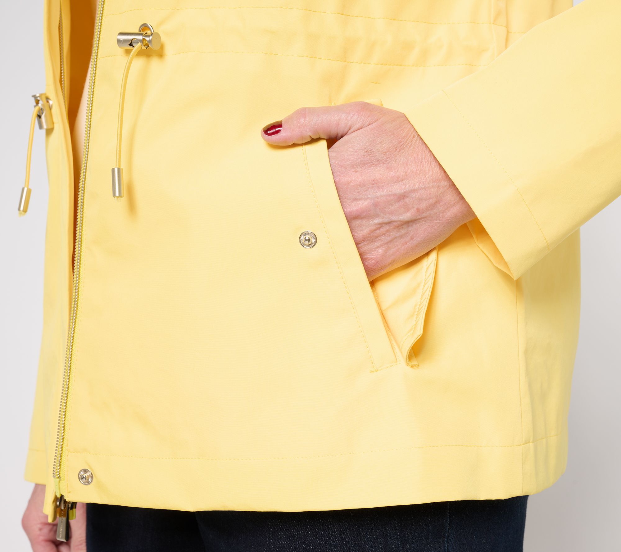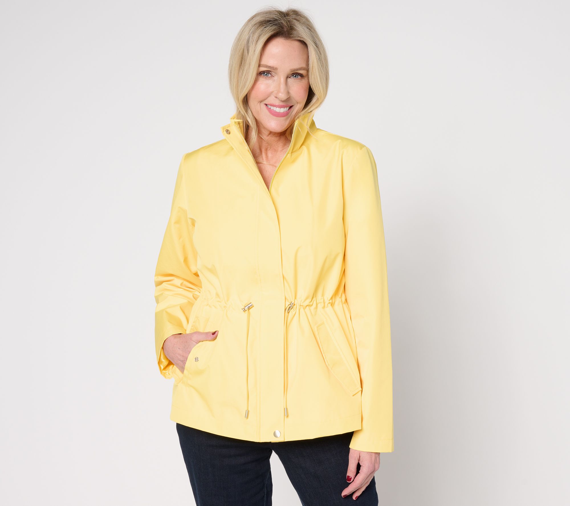 Embrace any weather with the Susan Graver water-resistant anorak jacket. Perfect for rainy day errands or breezy morning strolls, this jacket combines practical functionality with fashion-forward details. The hidden zipper placket and tunneled drawcord waist ensure a custom fit, while the angled welt pockets and back vent add versatile comfort. From Susan Graver.