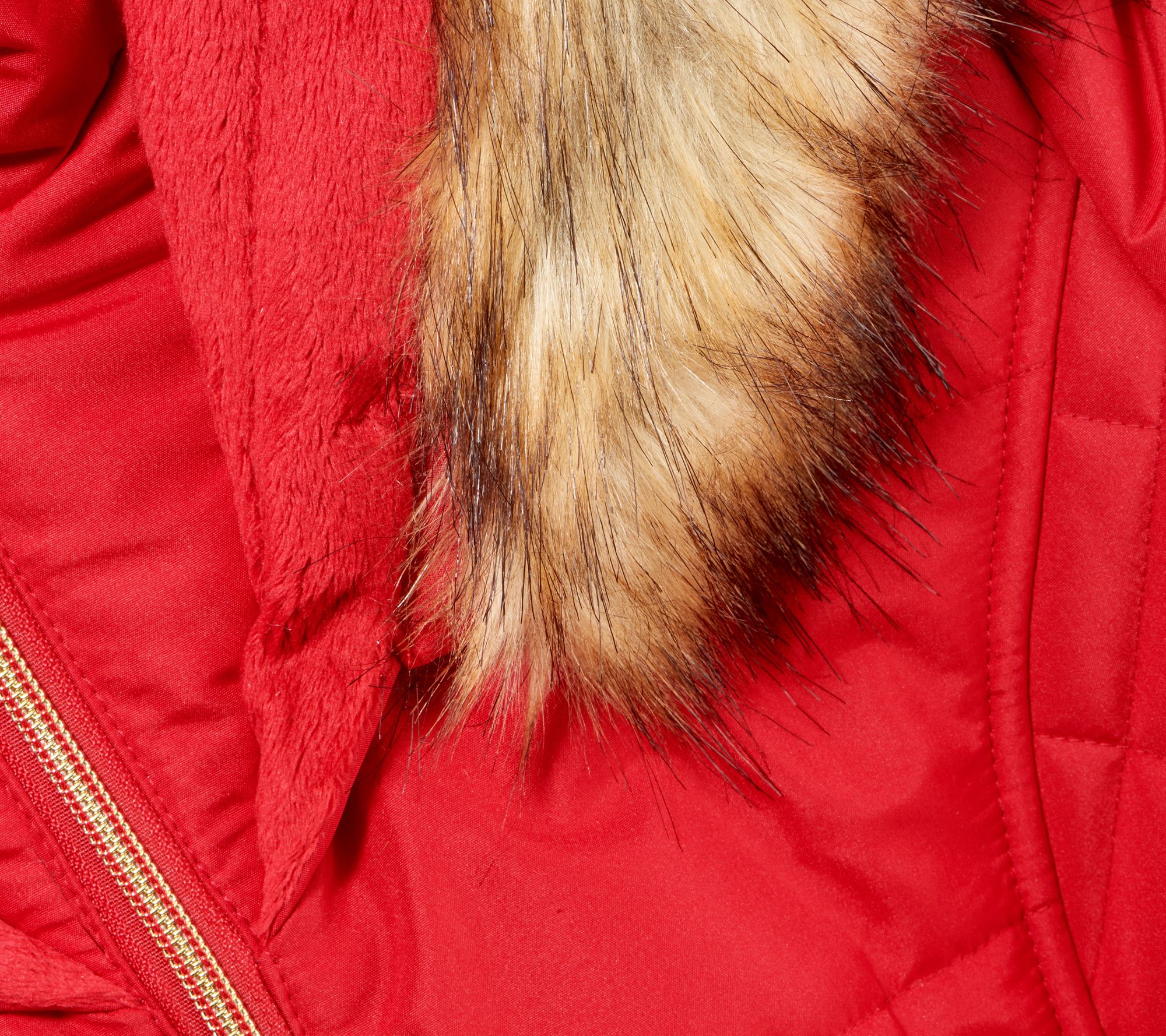 • Content: shell/lining 100% polyester; faux-fur trim 50% acrylic/26% polyester/24% modacrylic; fill 100% polyester