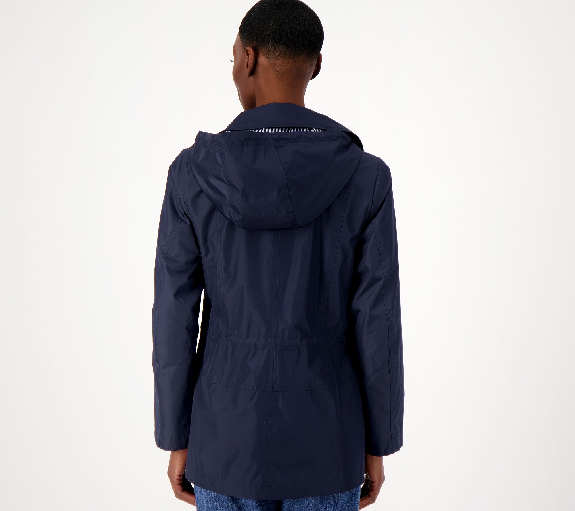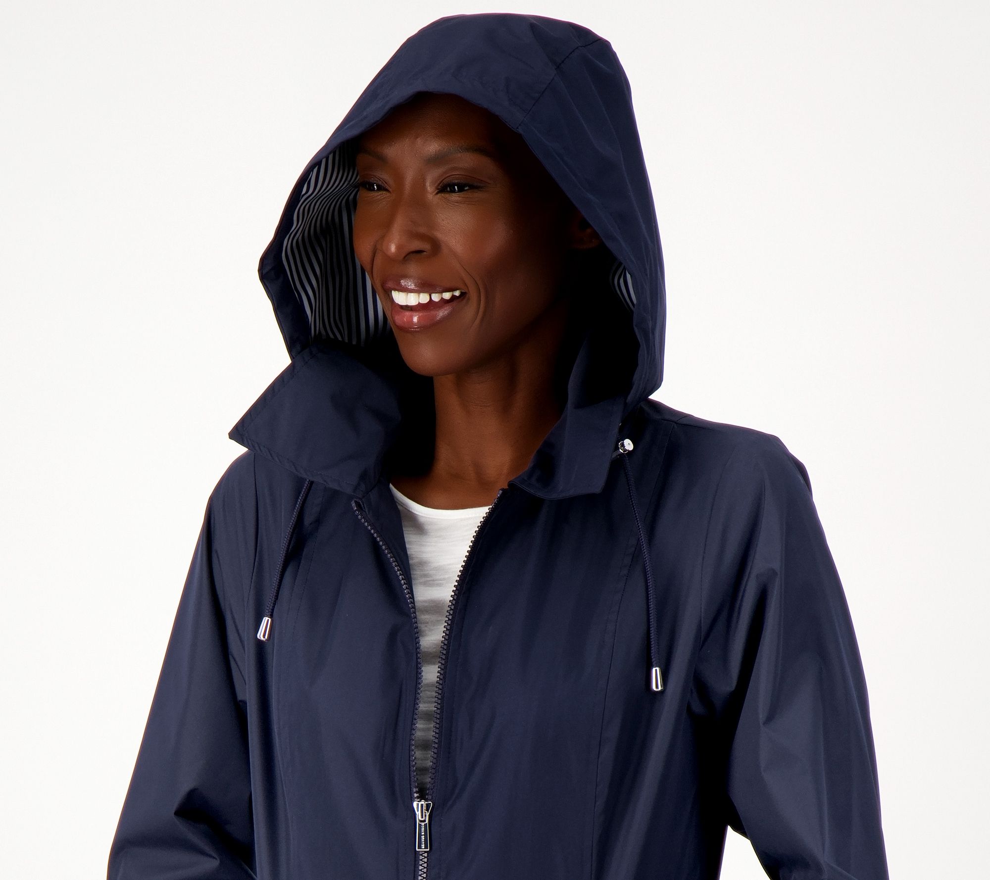 "As Is" Susan Graver Water Resistant Zip Front Jacket w/ Stripe Lining