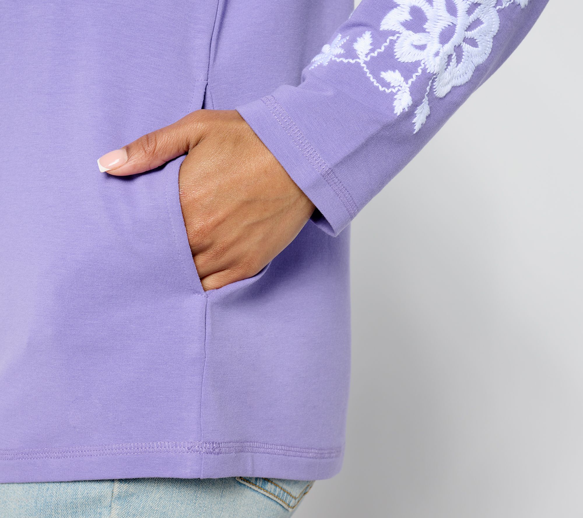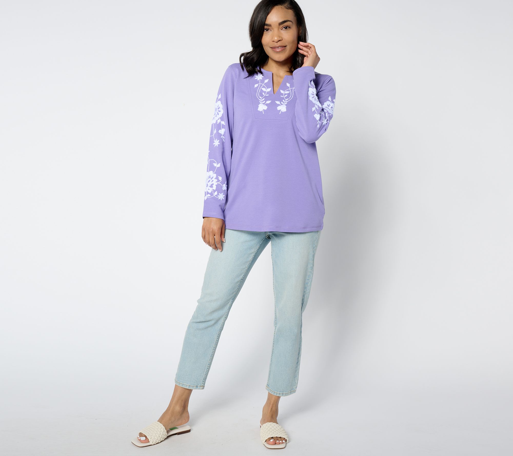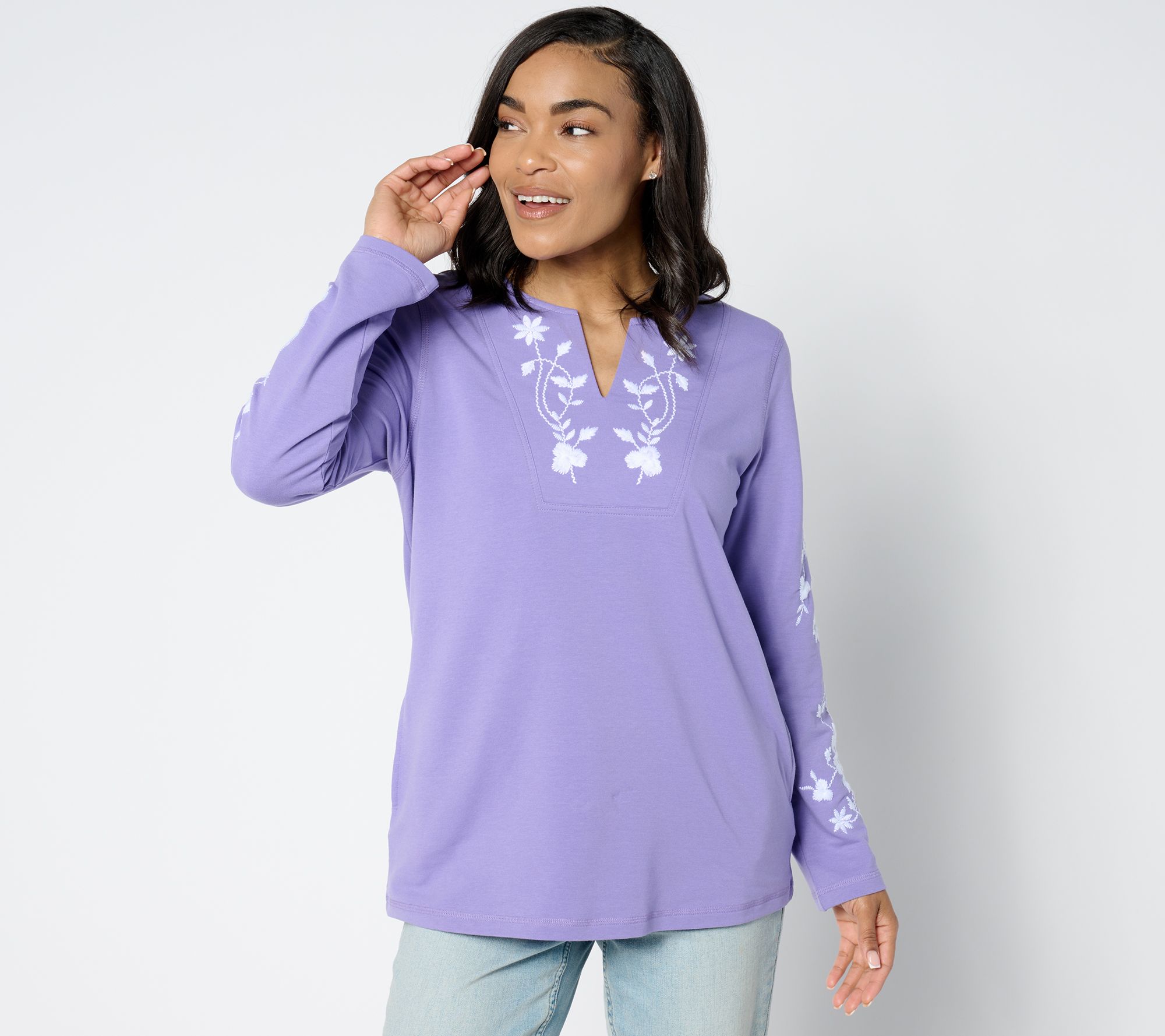 Easy elegance is having a moment. Embrace it in this beautifully embroidered tunic crafted in French terry (that's as soft as your sweats). From Susan Graver.