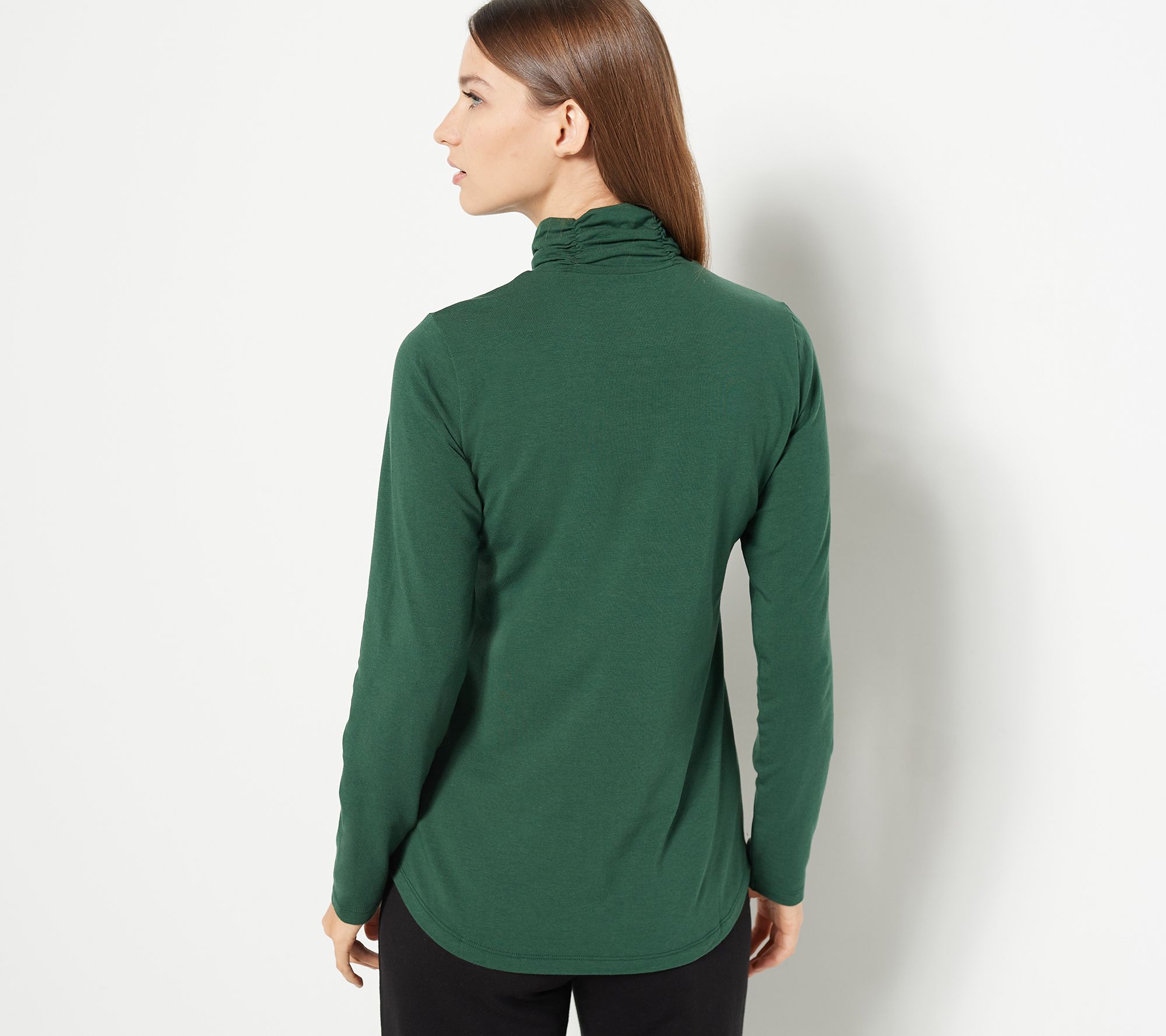 Initiating weekend mode! This sweetly ruched turtleneck in a soft cotton-blend makes your comfort a priority, so you can focus on everything else that fits into 48 off-duty hours -- or nothing at all. From Susan Graver.