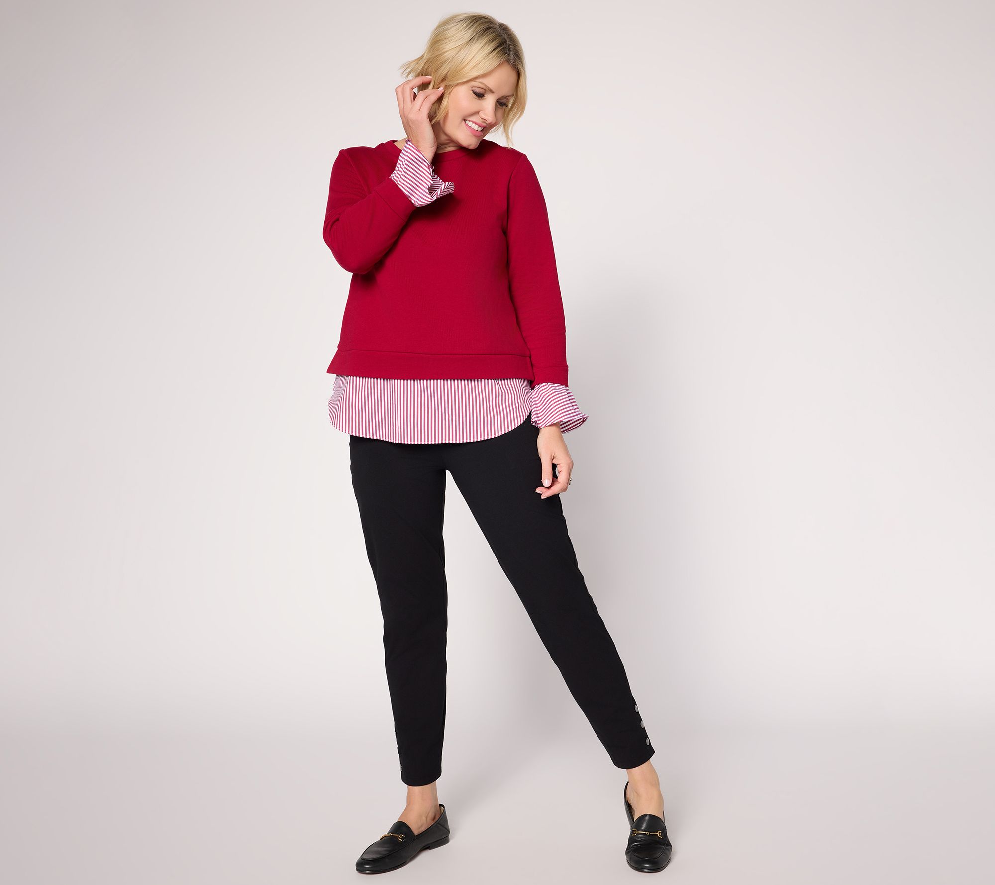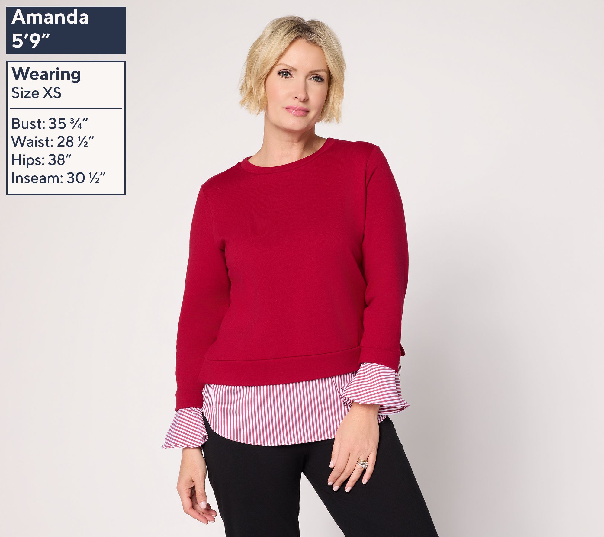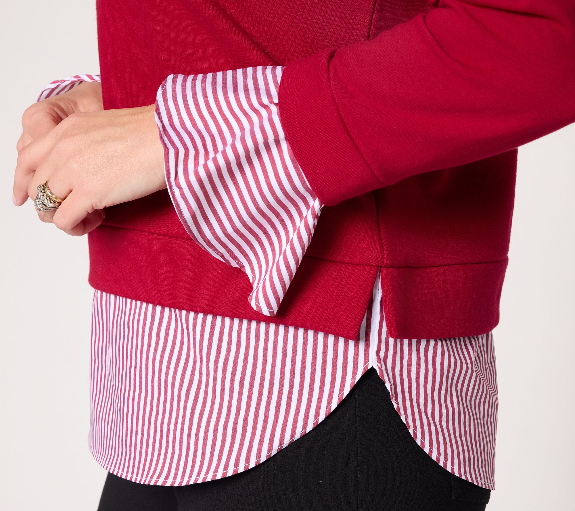 "As Is" Susan Graver Weekend French Terry with Woven Combo Top