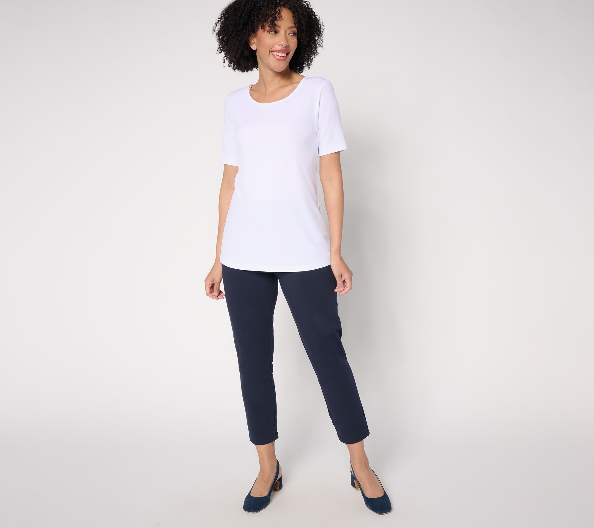 Your wardrobe essential, these premium stretch slim crop pants combine style and comfort for your busy days. Their sleek structure and hidden coin pocket ensure you look polished while feeling at ease. Pair them with your favorite tunic or tee for an effortlessly chic look. From Susan Graver.
