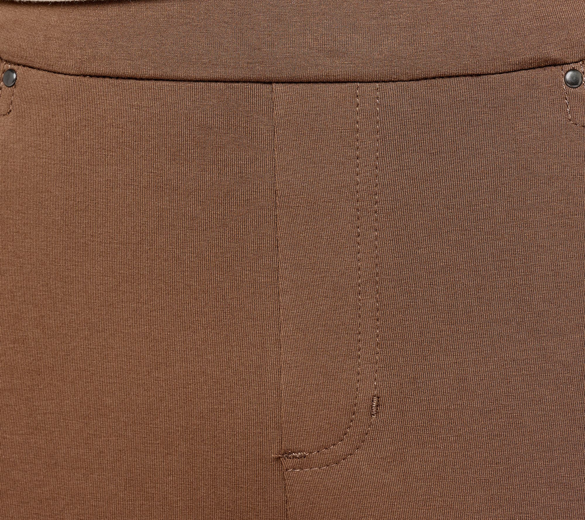 • Features: pull-on style, button and tab details at curved side vent leg openings, L-shaped pockets with rivets, faux fly