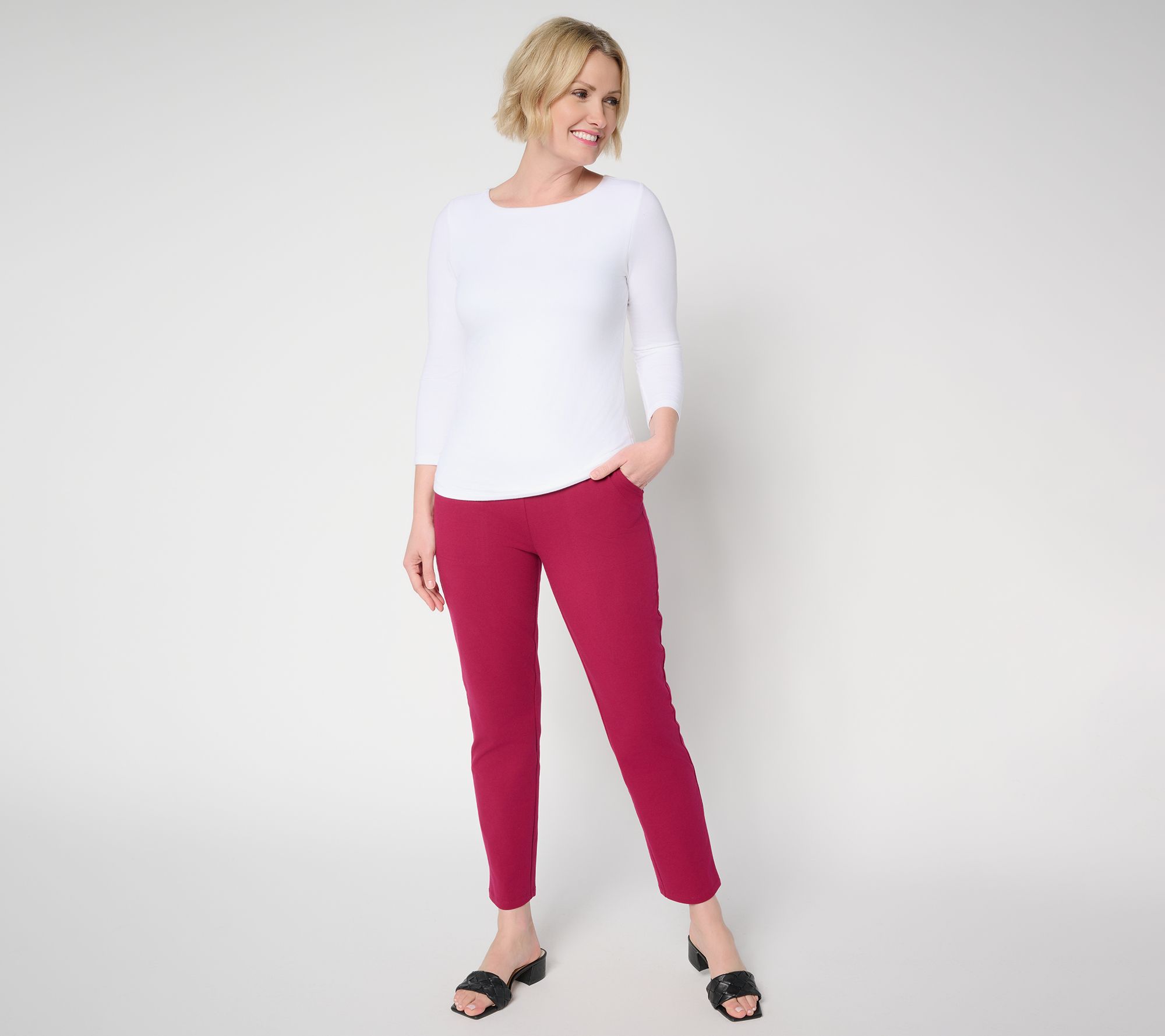 Get ready for take-off, business meetings, and weekend getaways in these practical-yet-polished Travel Knit pants. We love how the slim leg finishes crisply at the ankle, working equally well with your loafers, sneakers, or going-out sandals. (How's that for saving space in your suitcase?!) From Susan Graver.
