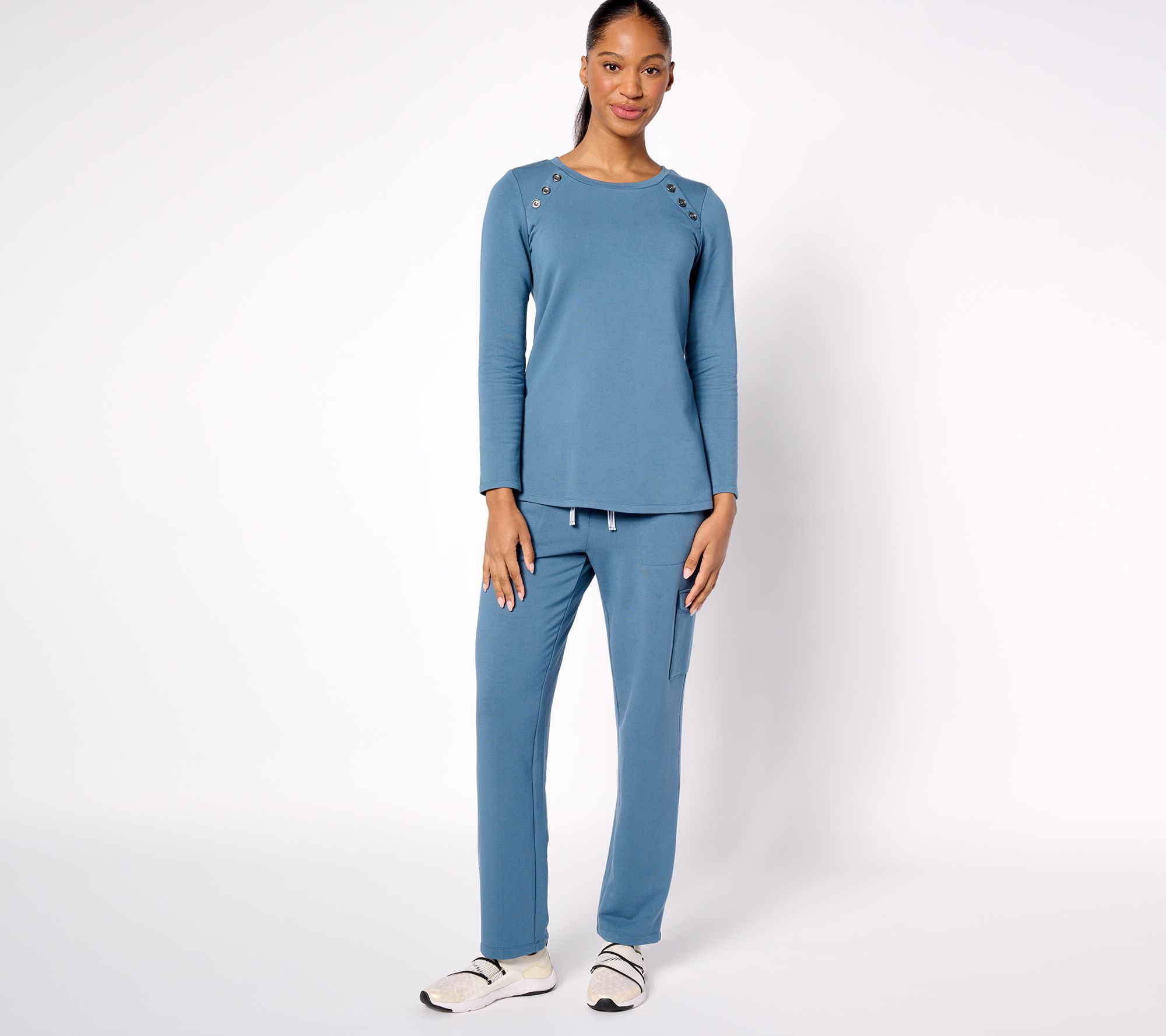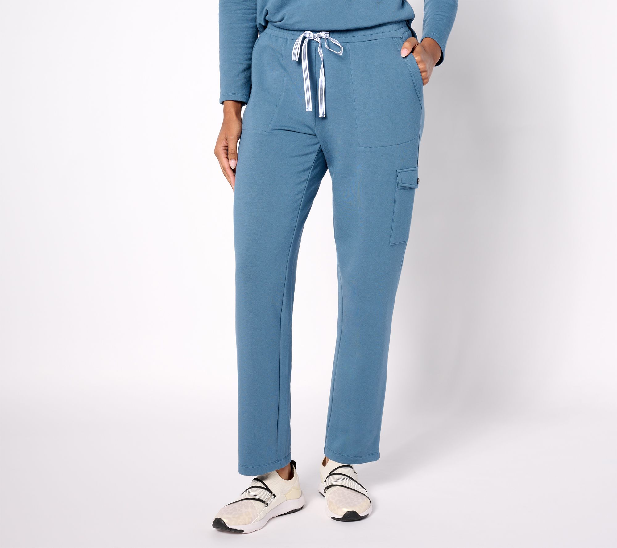 "As Is" Susan Graver Weekend Regular Brushed Knit Straight Leg Cargo Pants