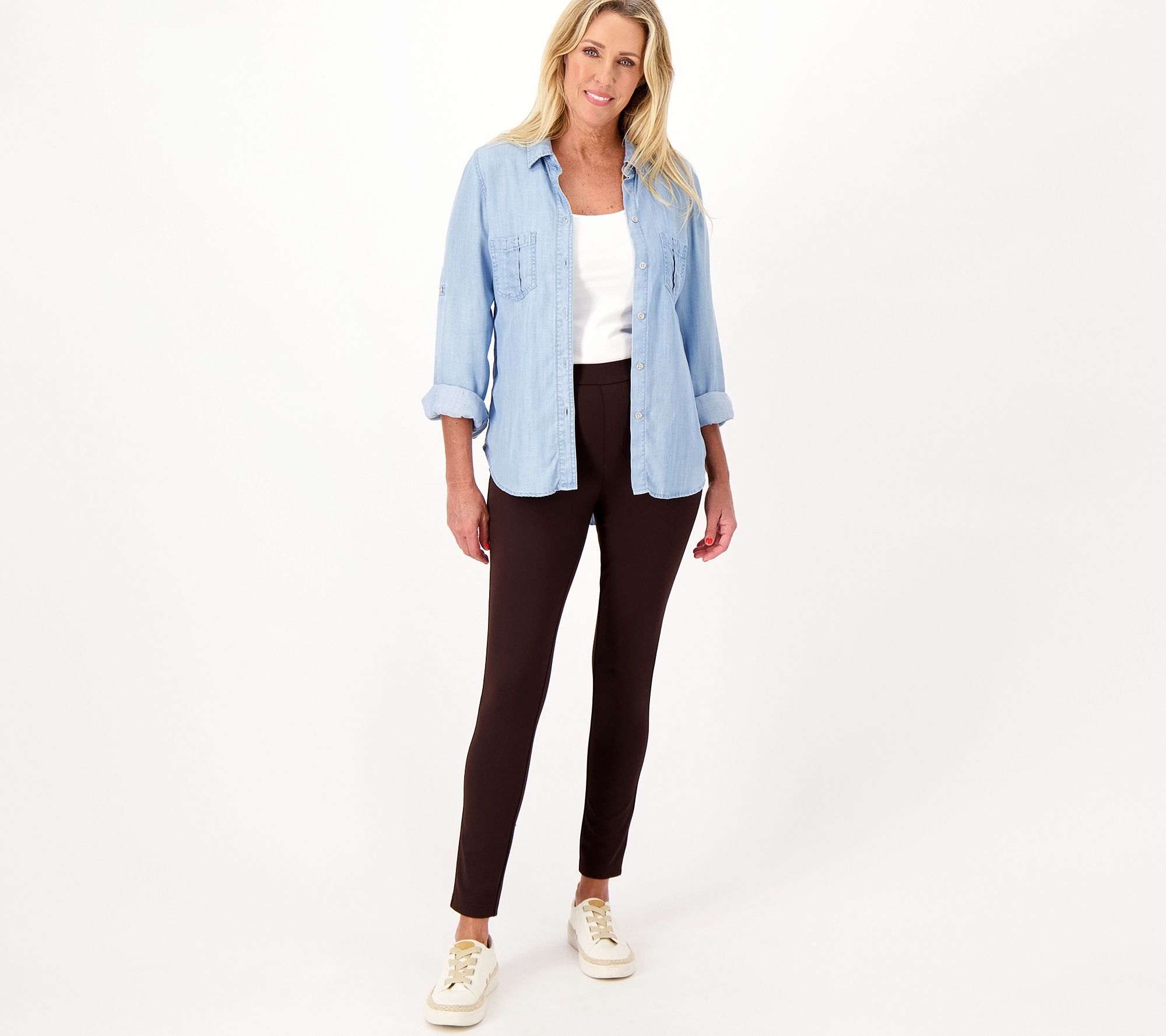 These brushed-back knit leggings are the most versatile pants in your closet. They pair perfectly with anything from sneakers to boots to heels. From Susan Graver.