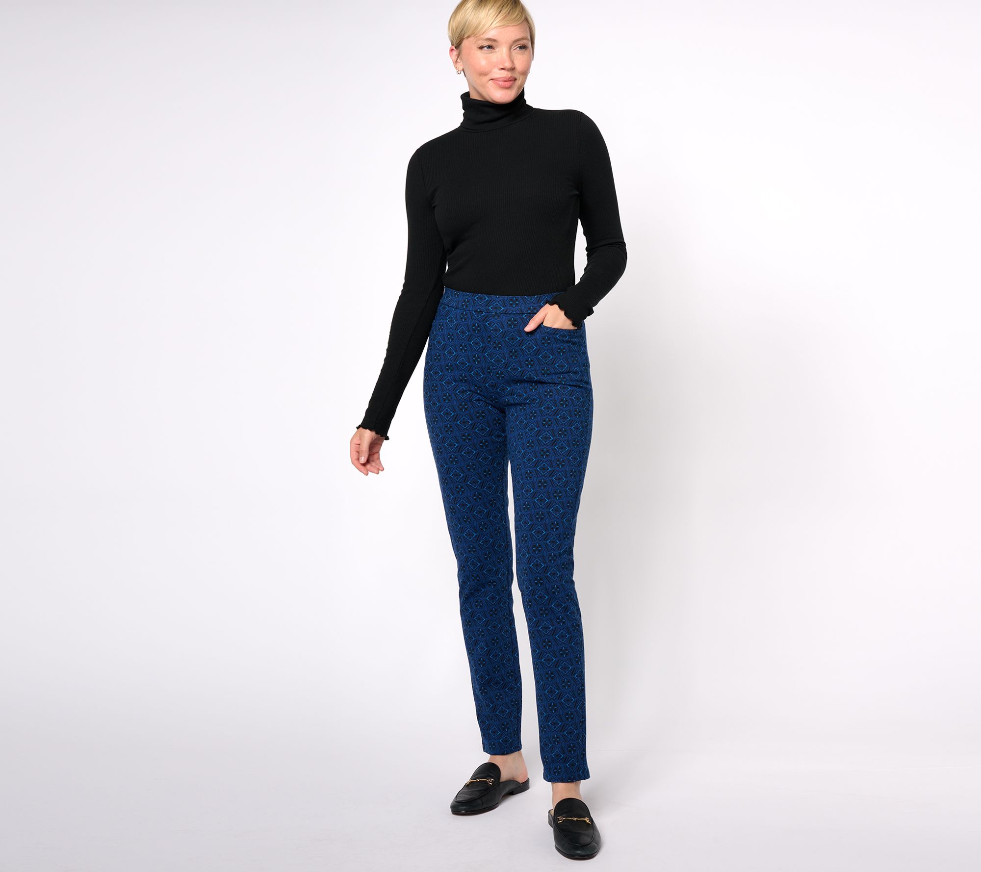 "As Is" Susan Graver Weekend Regular Printed Premium Stretch Ava Slim Pants