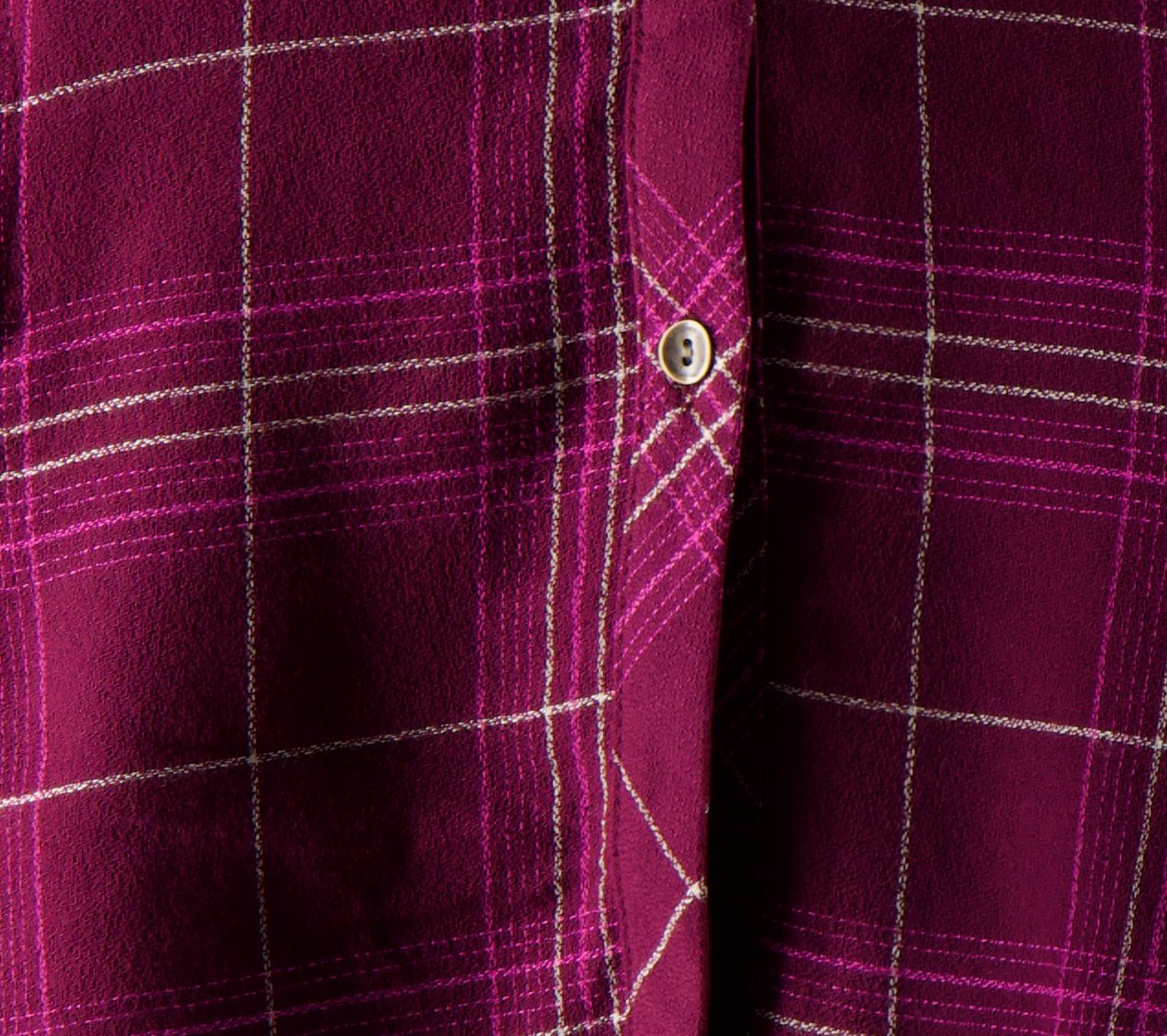 • Features: button-front closure, collared, Y-neckline, cuffed long sleeves, on-seam pockets, shirttail hem
