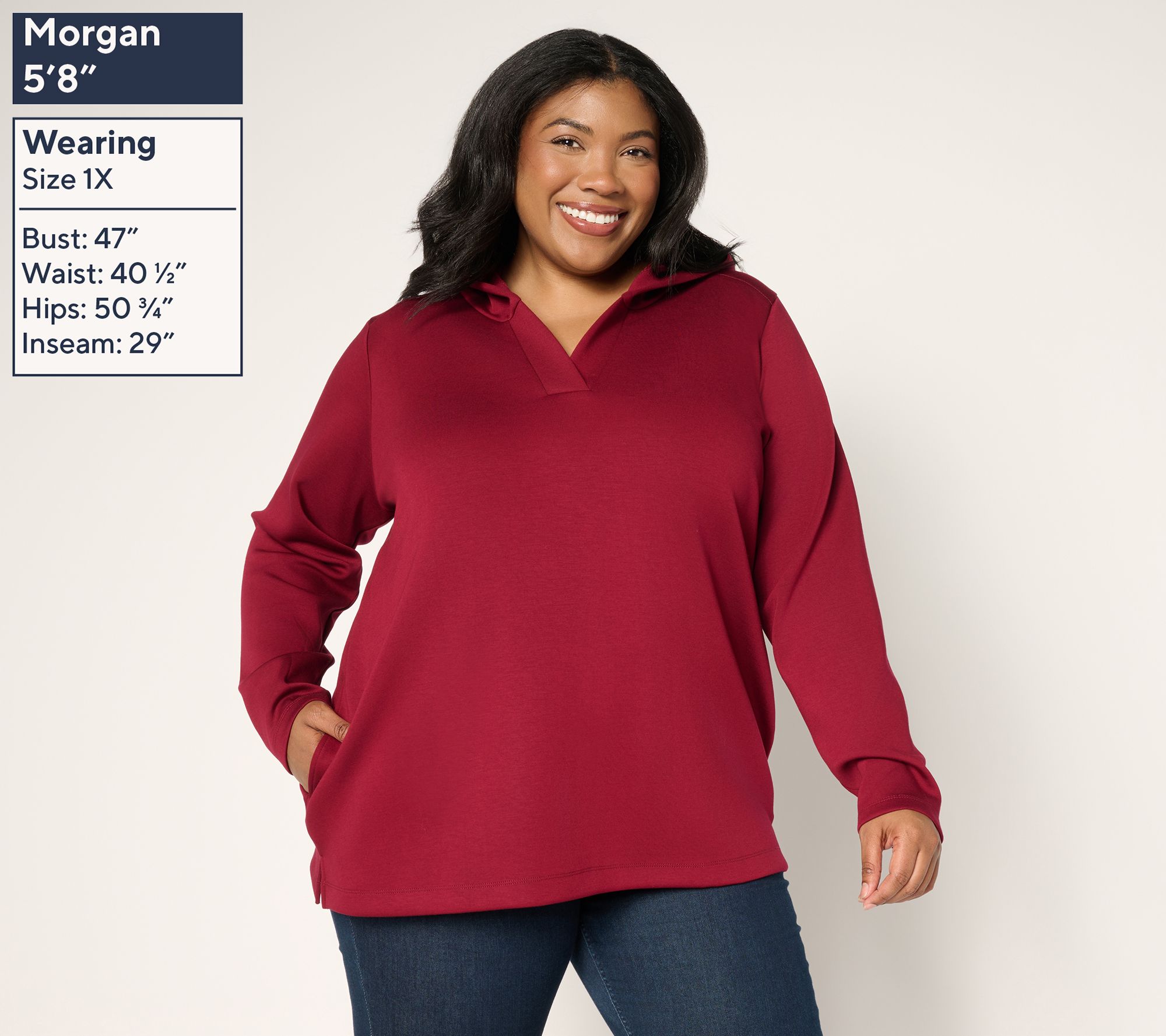 Take on the weekend in style each time you slip on this hooded top. The cozy Serene knit fabrication makes it a choice you'll make time and again. From Susan Graver.