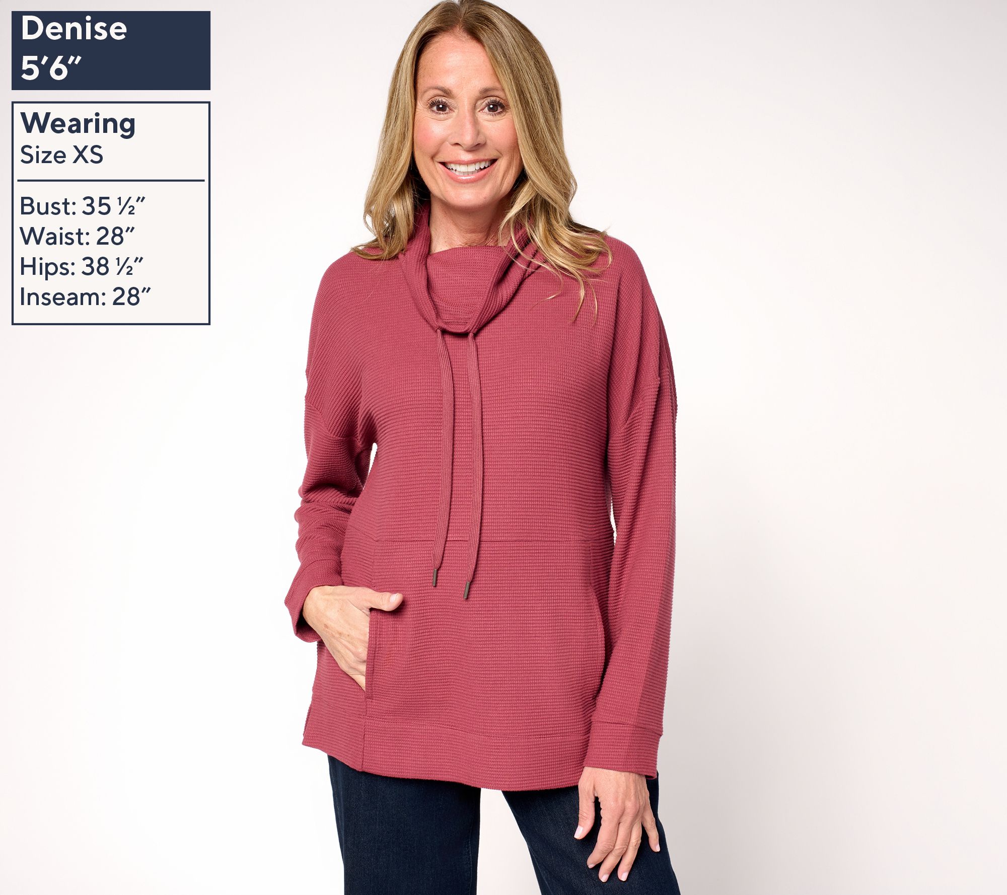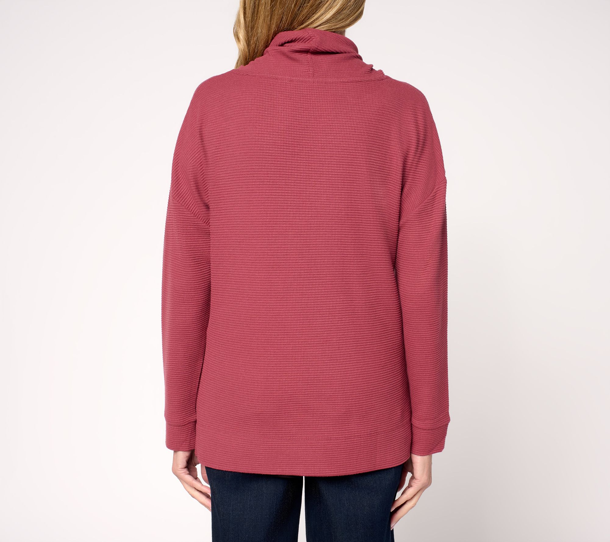 "As Is" Susan Graver Weekend Waffle Knit Draped Cowl Neck Top