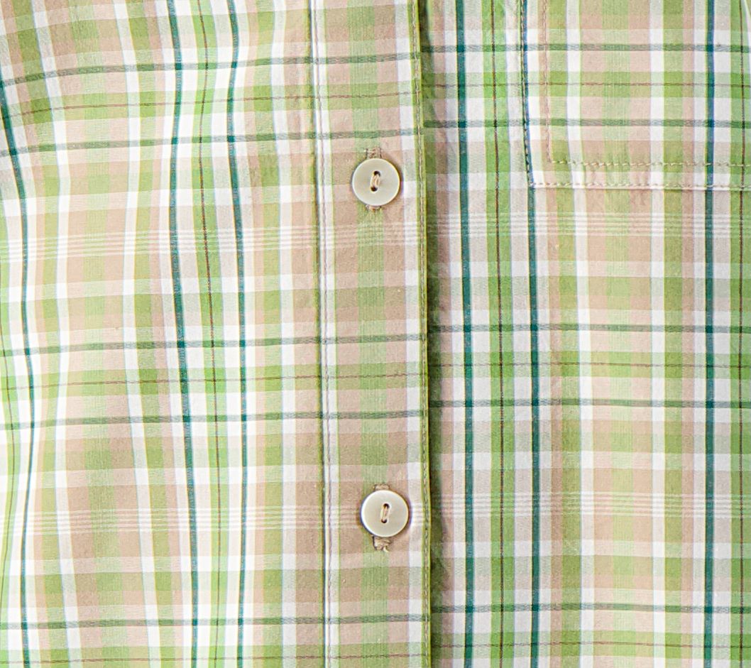 • Features: button-front closure, plaid print, roll-tab long sleeves, patch chest pocket, side slits, shirttail hem