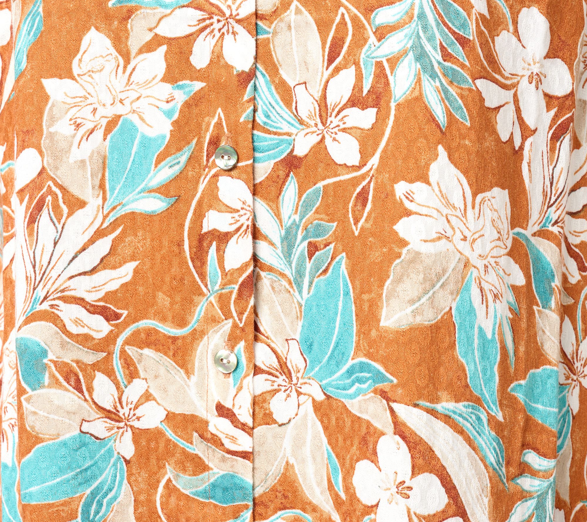 A pretty print gives this button-front shirt its feminine flair. You'll love this alternative to those ordinary tees. From Susan Graver.