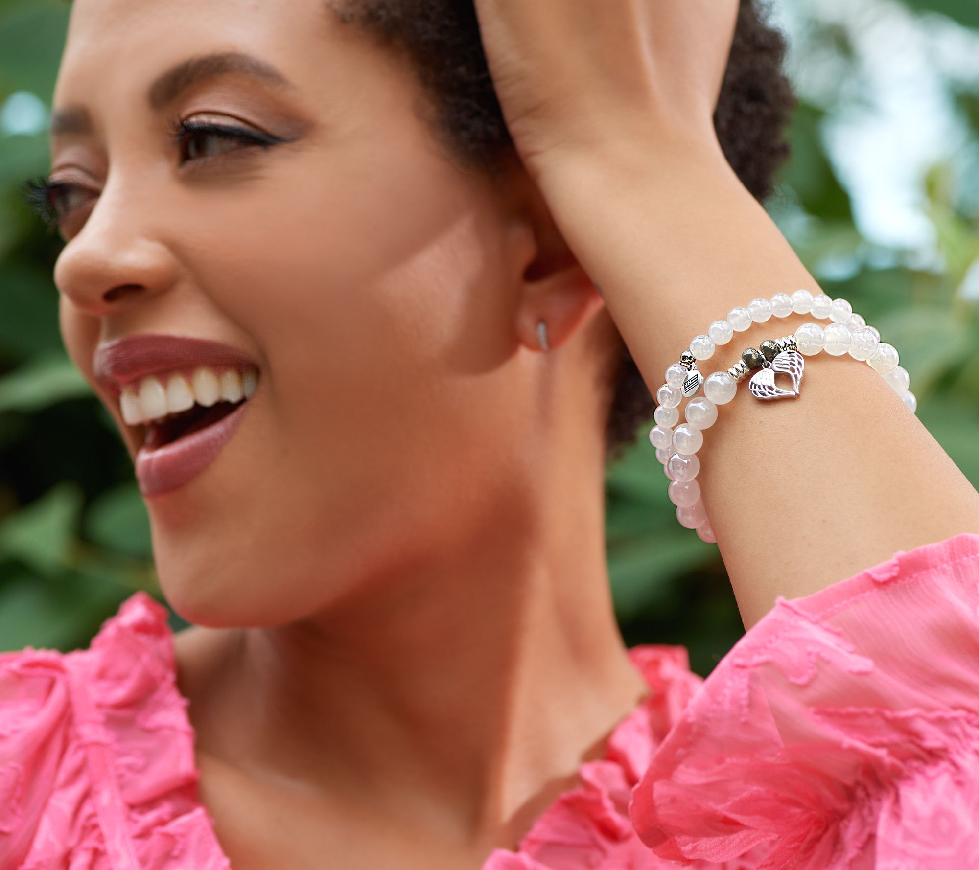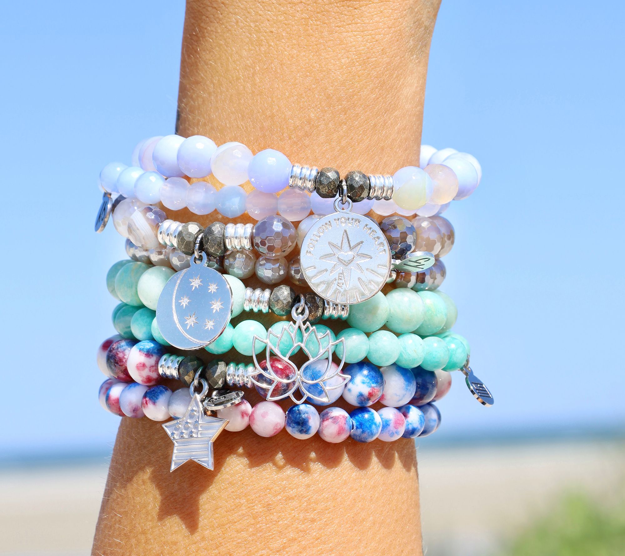 That's where this gemstone beaded set of T. Jazelle stretch bracelets comes in, one with a pretty charm and both beautiful for stacking. They infuse your style with your story.