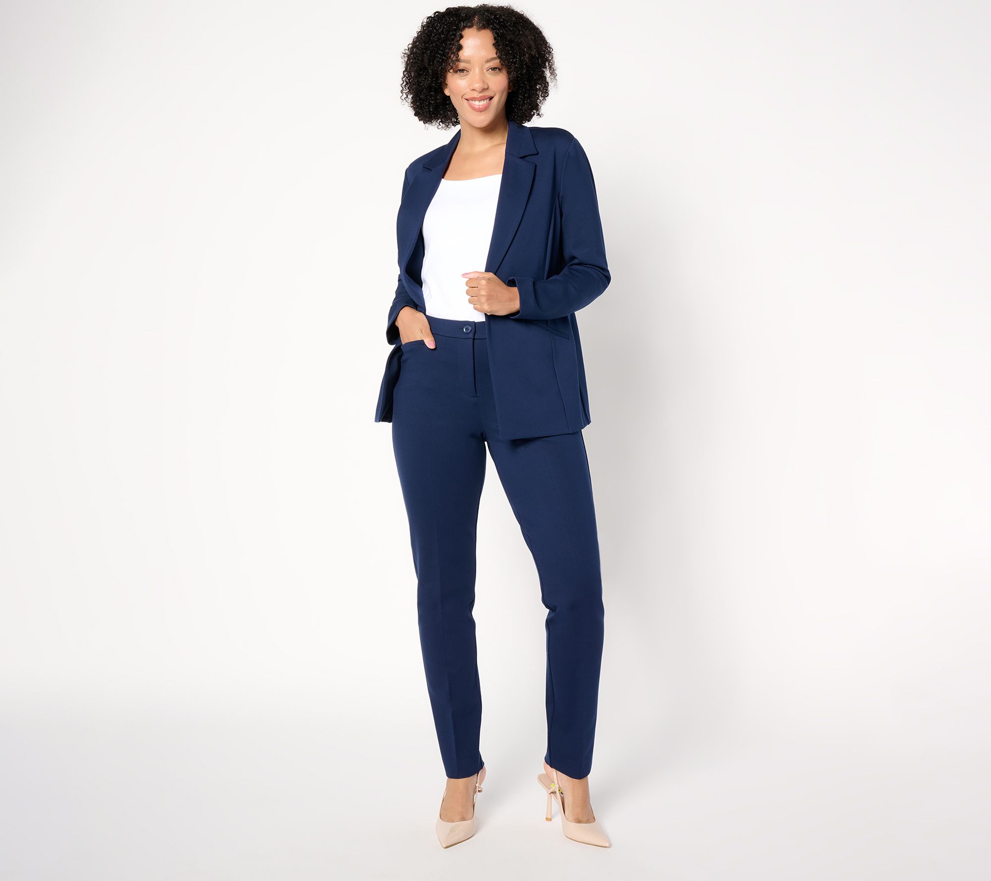 Suit yourself! Susan Graver's slim-leg trousers in Smart Ponte are the no-fail tailored look for your next chapter, from landing a new client to expanding your leadership role to exploring that second (or third) career.
